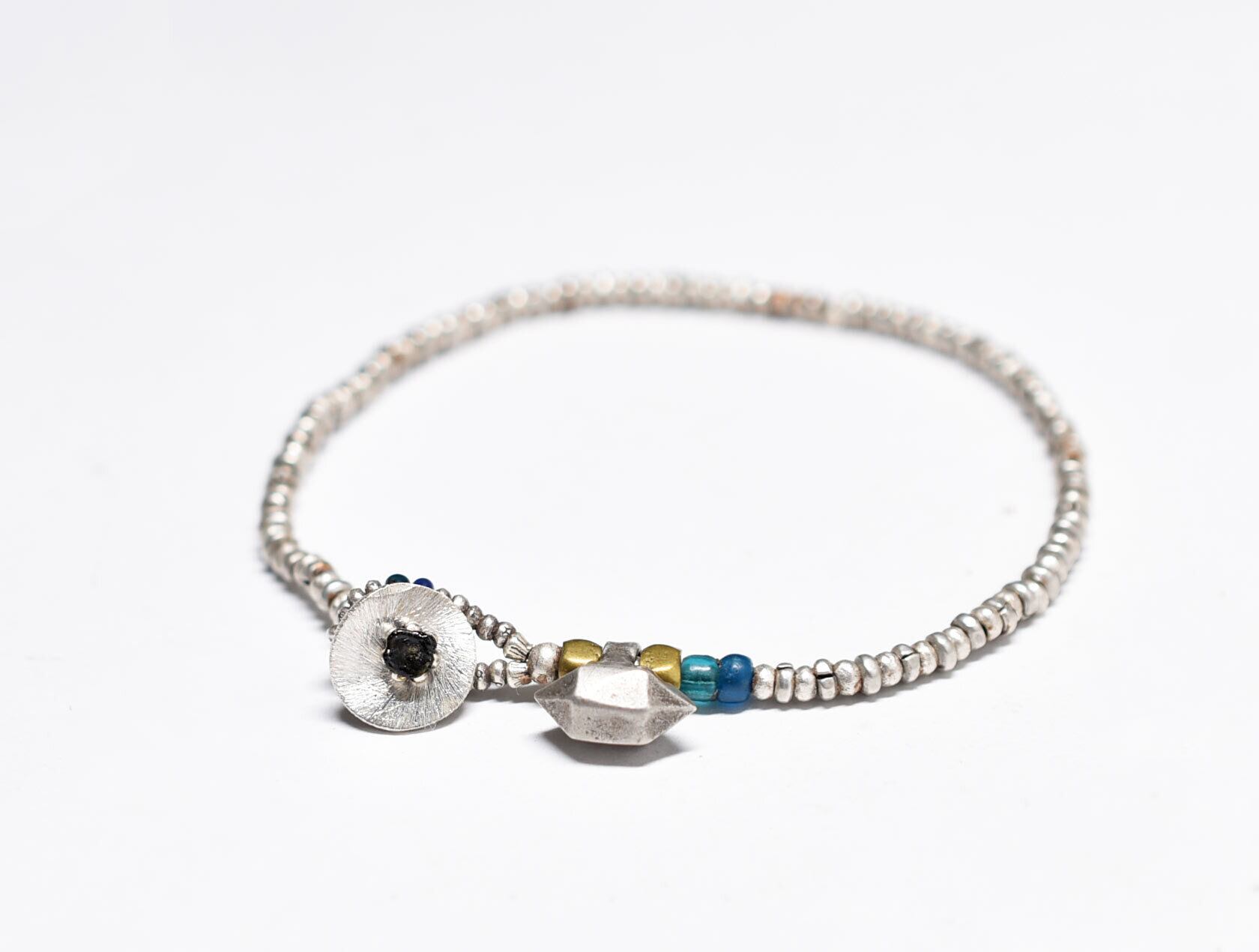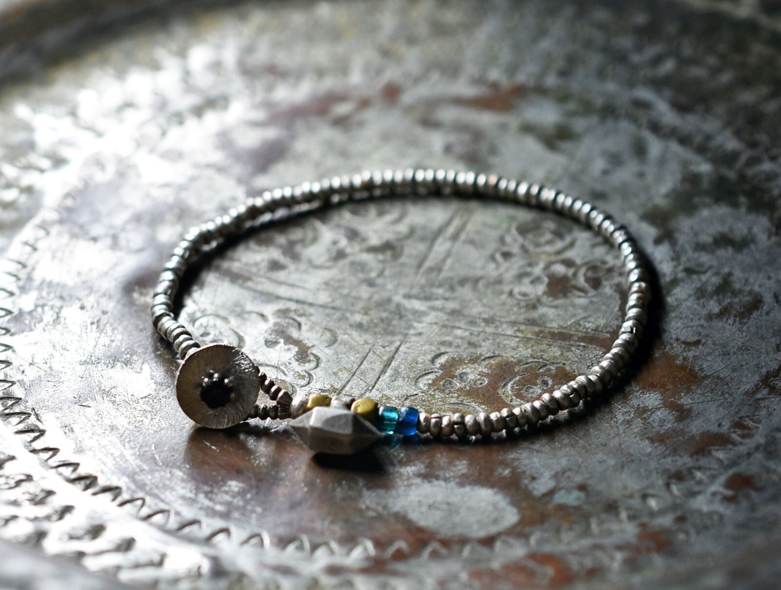 シャン族oldシルバーとカレンシルバー、oldオリッサブラス、ブルービーズ、oldアフガンメタルチャームを繋いだブレスです。