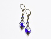 ブルー&クリアチェコビーズとラピス&クォーツのピアス