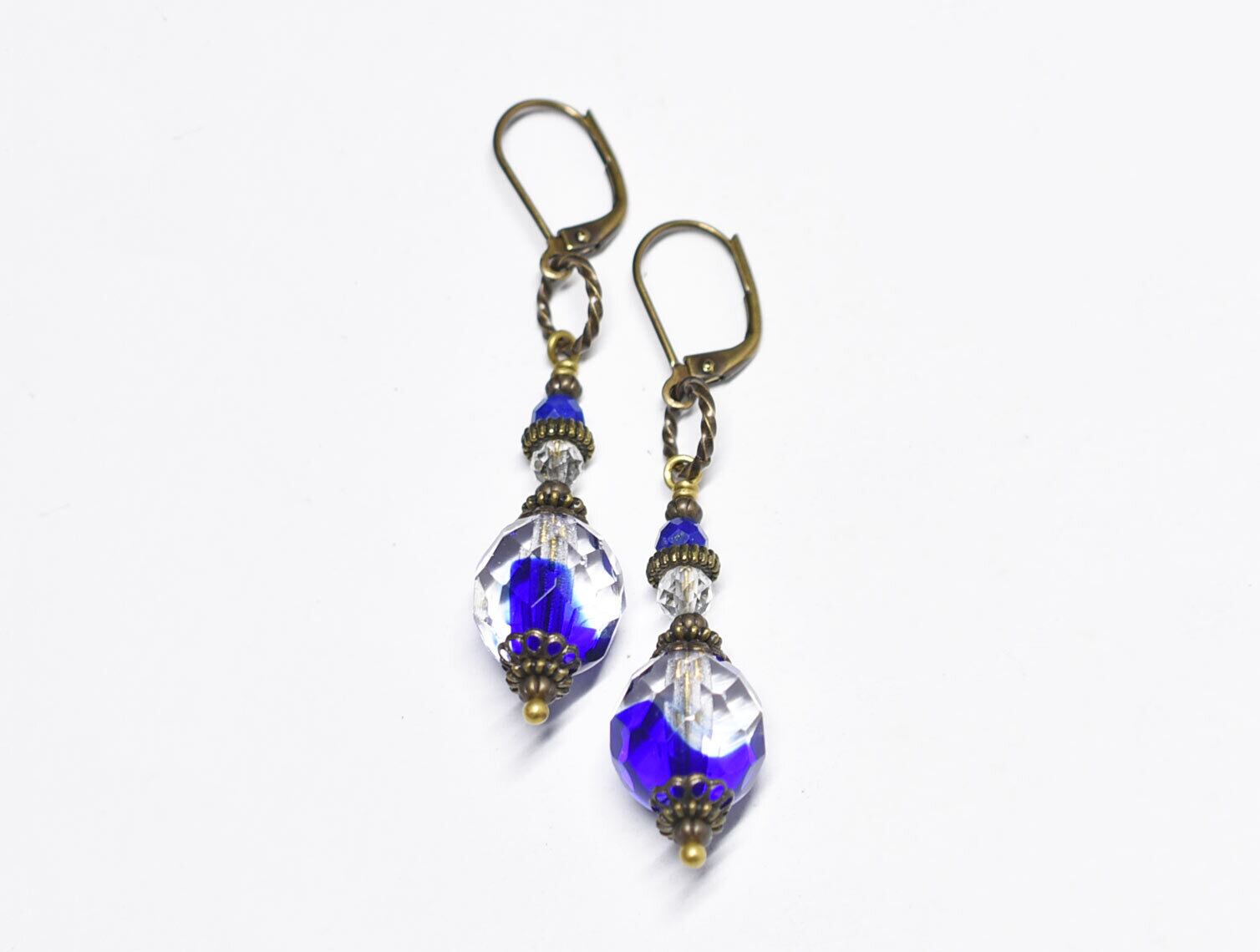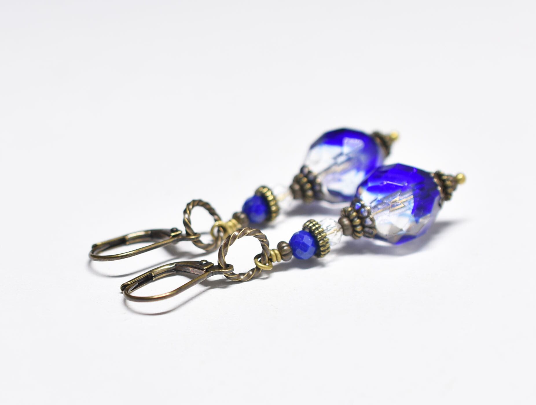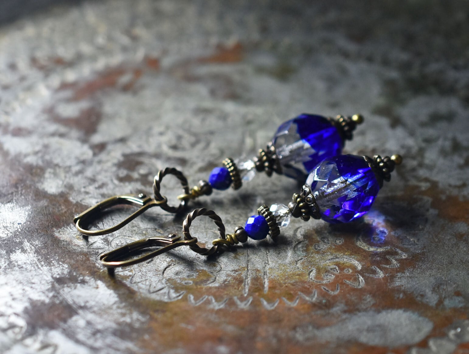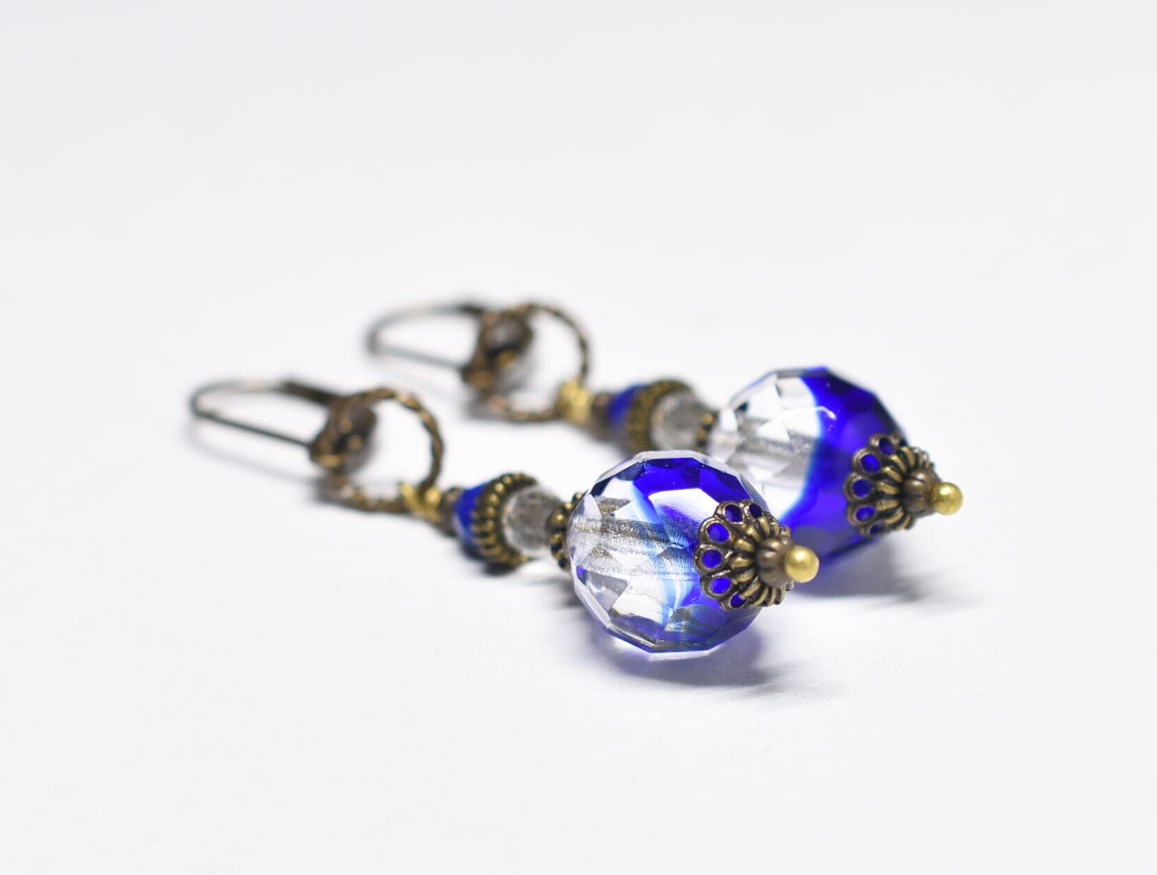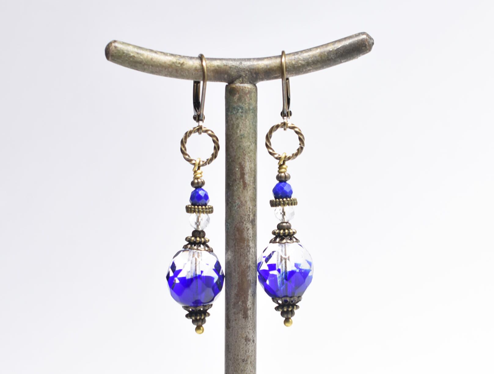 カットが施された鮮やかなブルーとクリアのビーズチェコビーズです。こちらは現行品です。