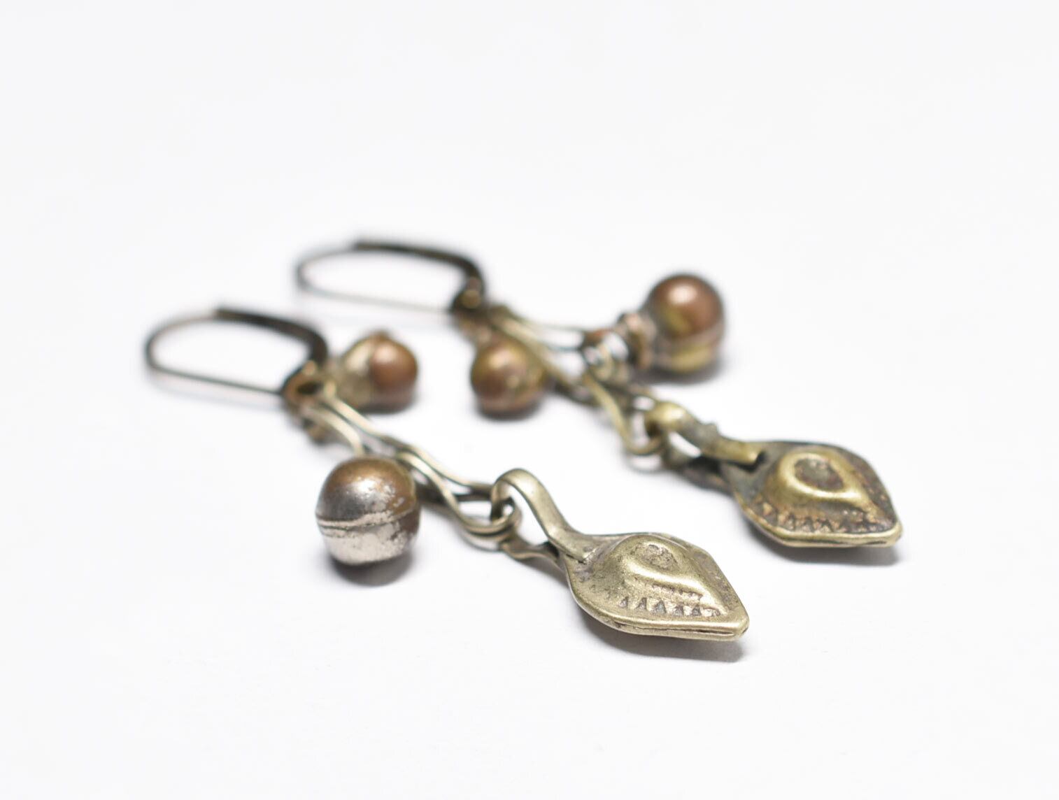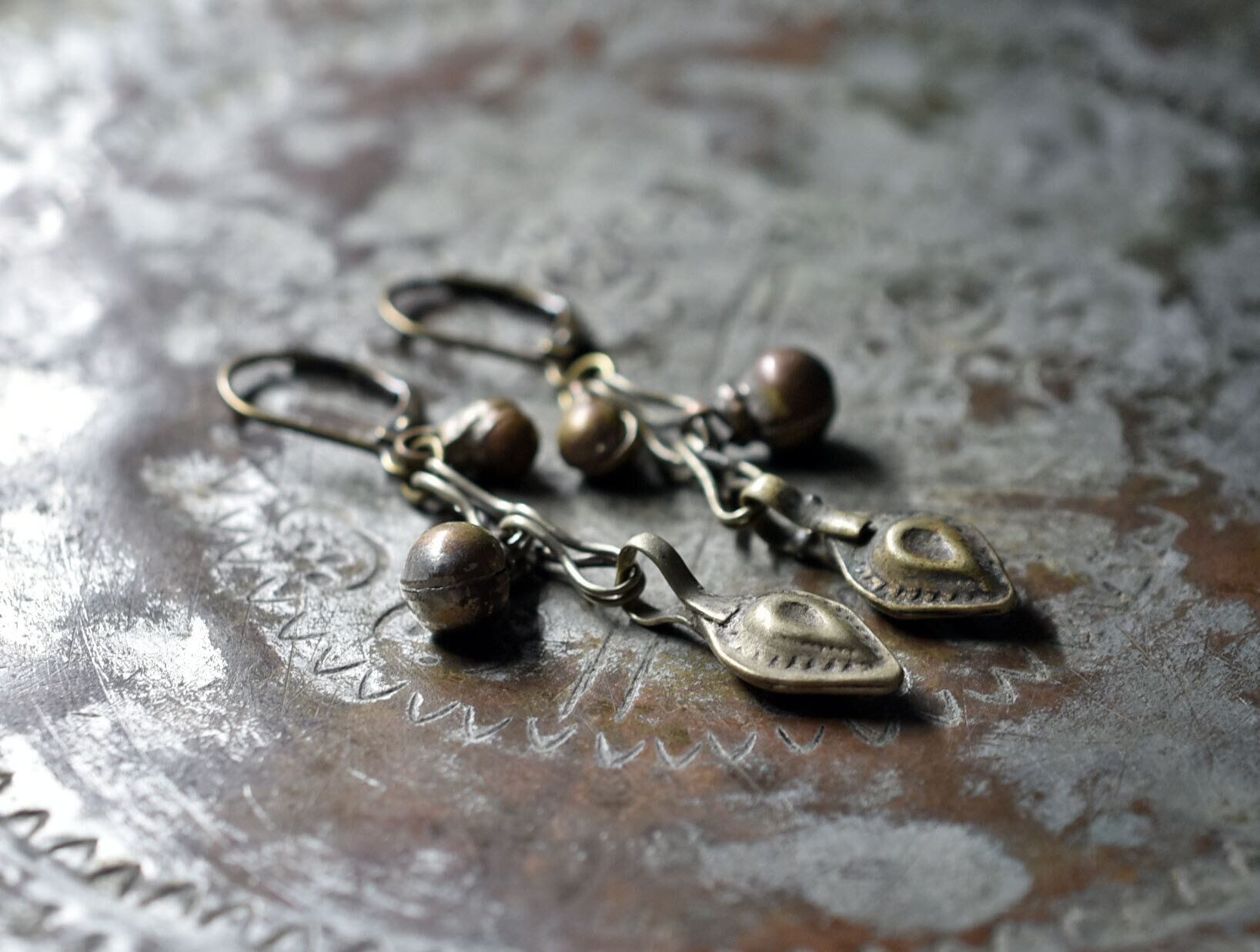 ペイズリー型oldアフガンメタルと民族鈴を繋いだピアスです。
