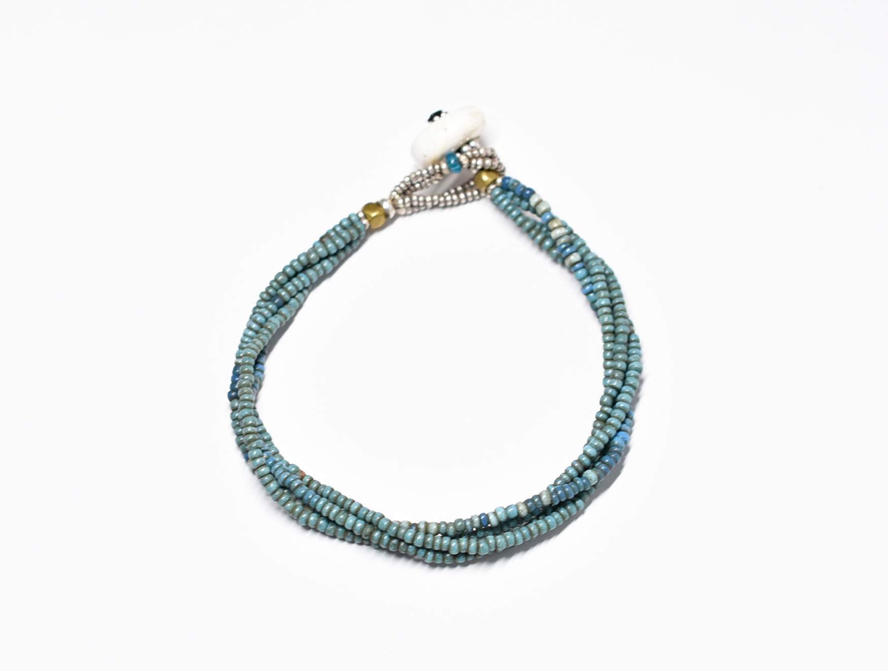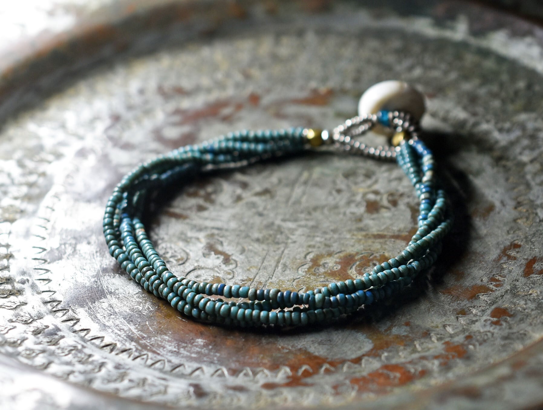 アンティーク水浅葱色mixシードビーズの4連ブレス(貝ビーズ留め金)です。