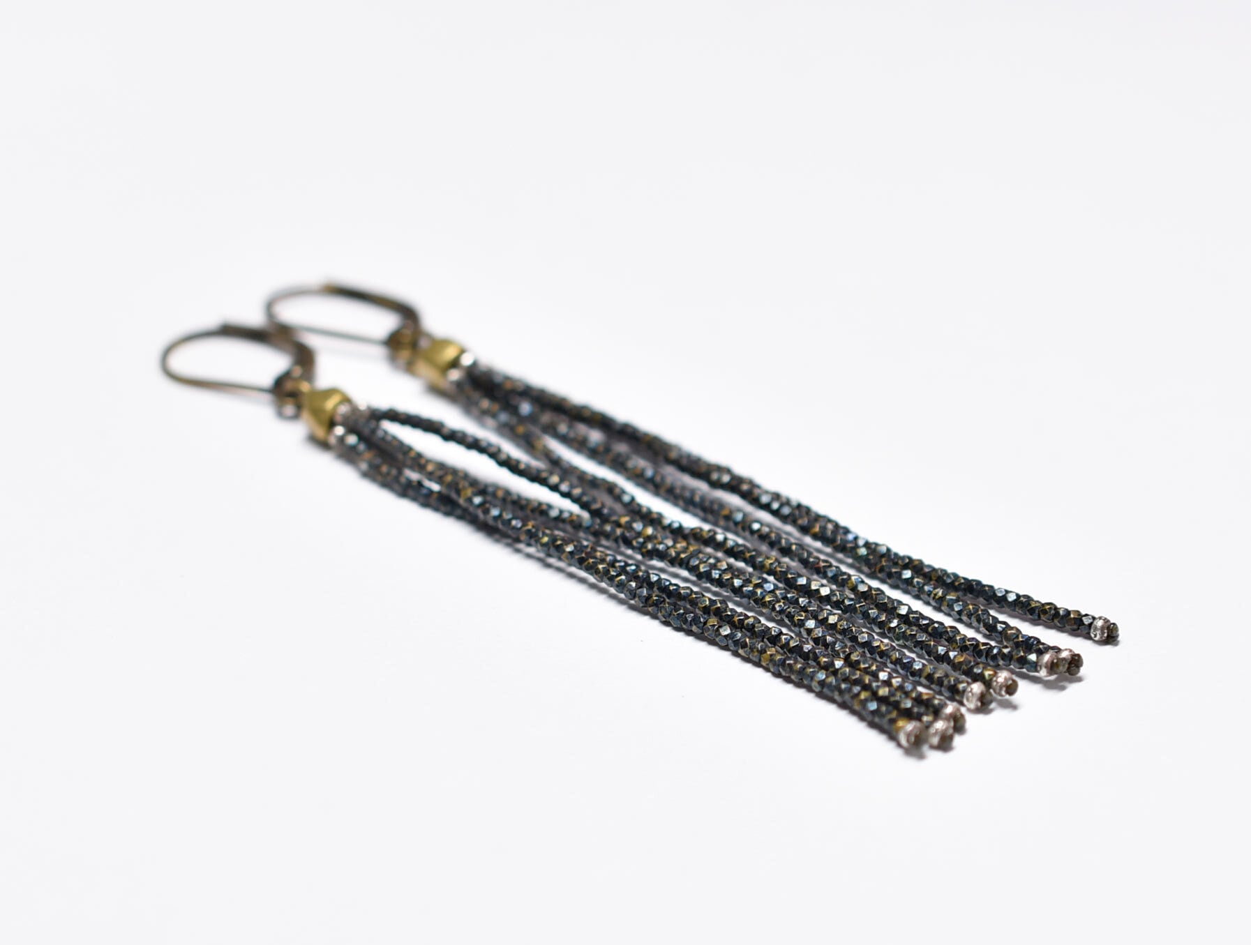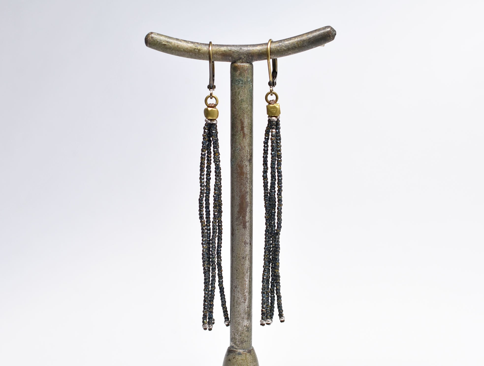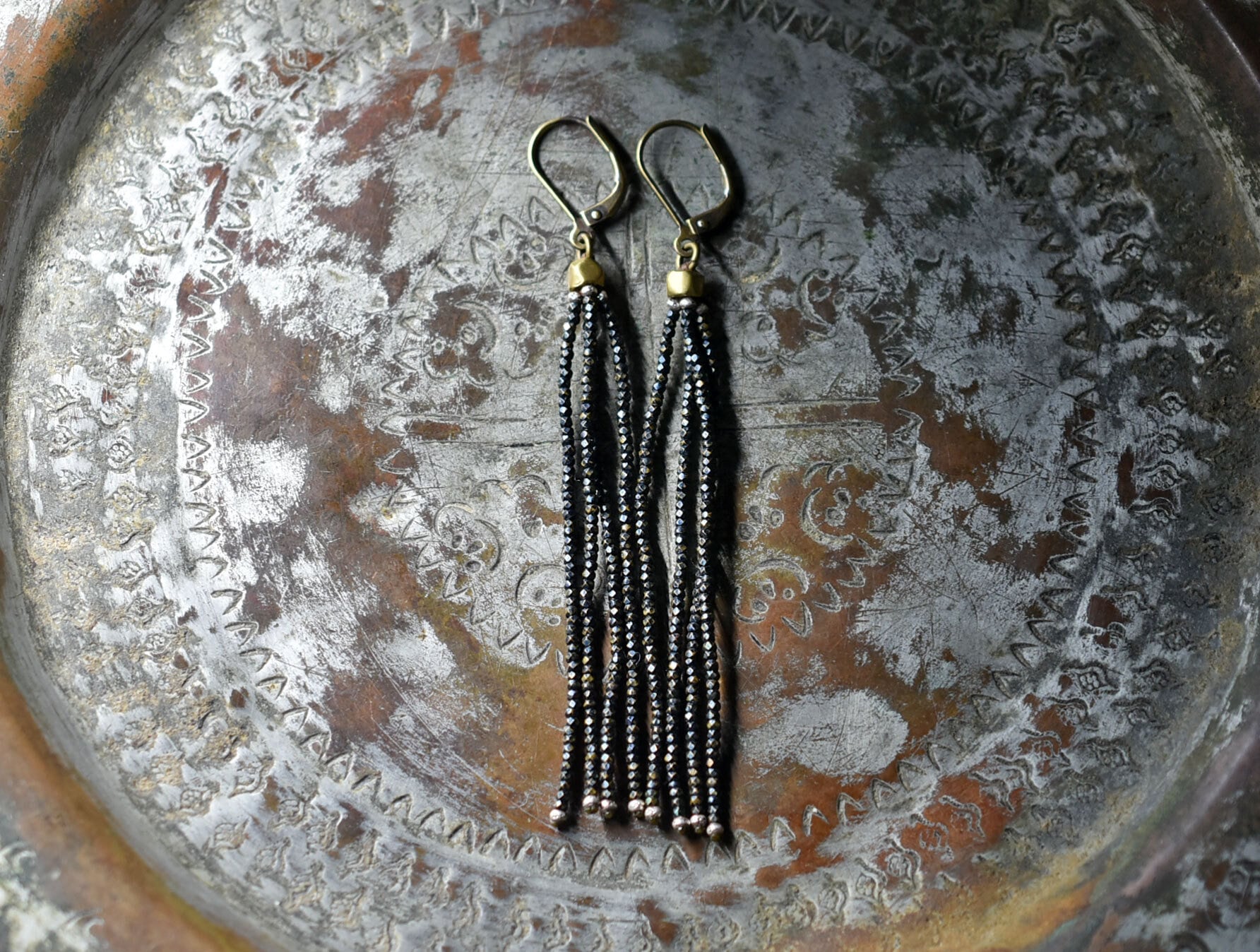 フランスアンティークブラックカットメタルビーズの4連ピアス