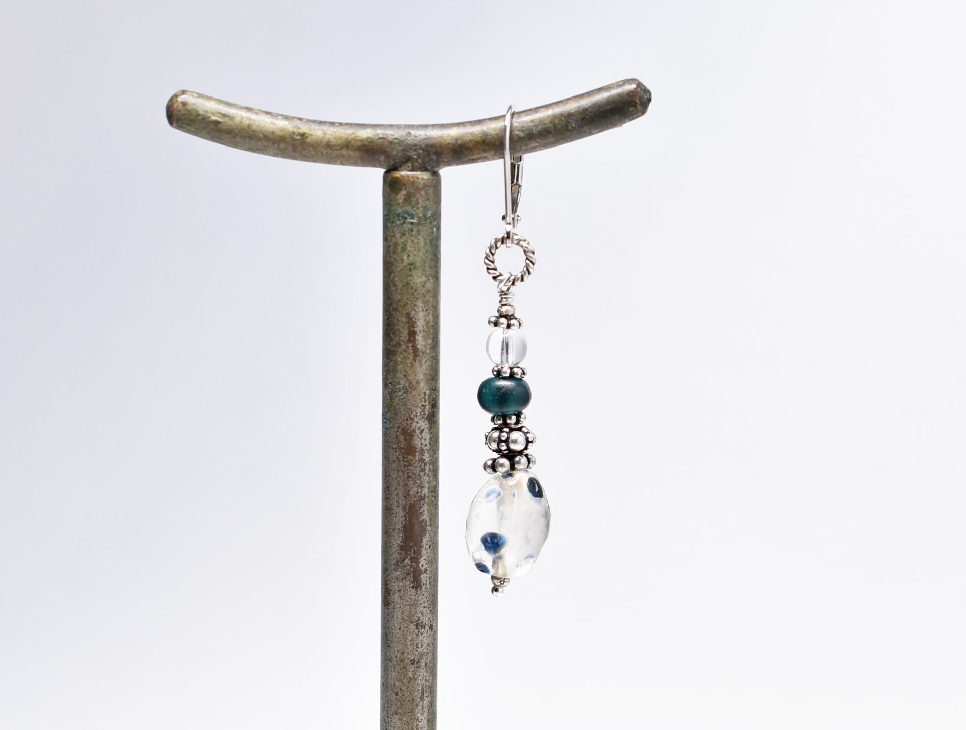 古代施釉水晶とインディゴブルーアンティークビーズアンティーク、古代水晶、シルバービーズの片耳ピアス