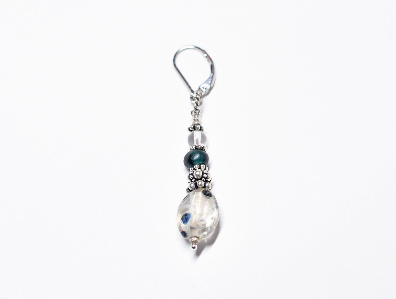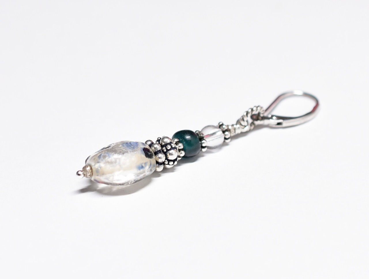 古代施釉水晶とインディゴブルーアンティークビーズアンティーク、古代水晶、シルバービーズを繋いだ片耳ピアスです。