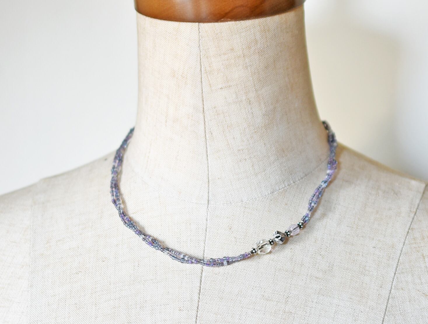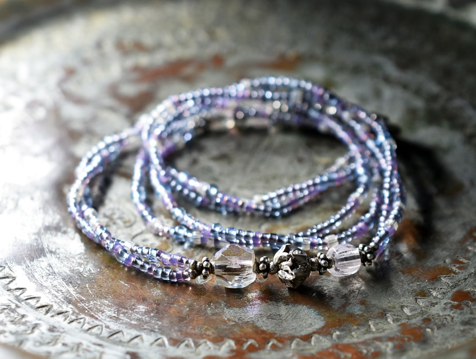 小さなパープルやピンクオパール、青藤色のビーズはフランスのヴィンテージビーズです。