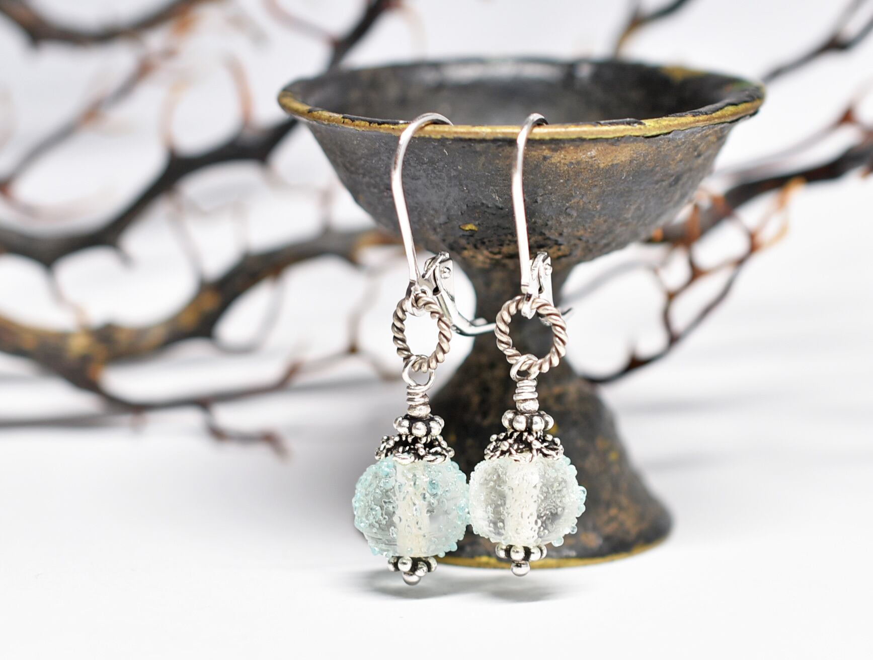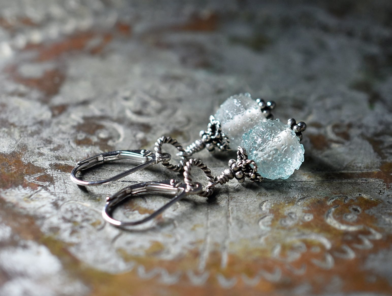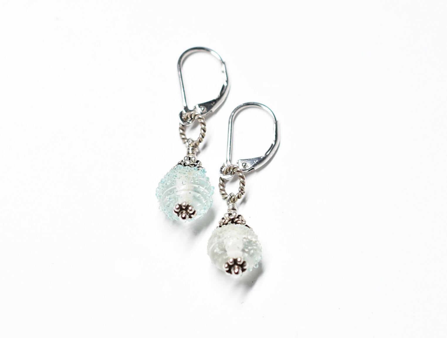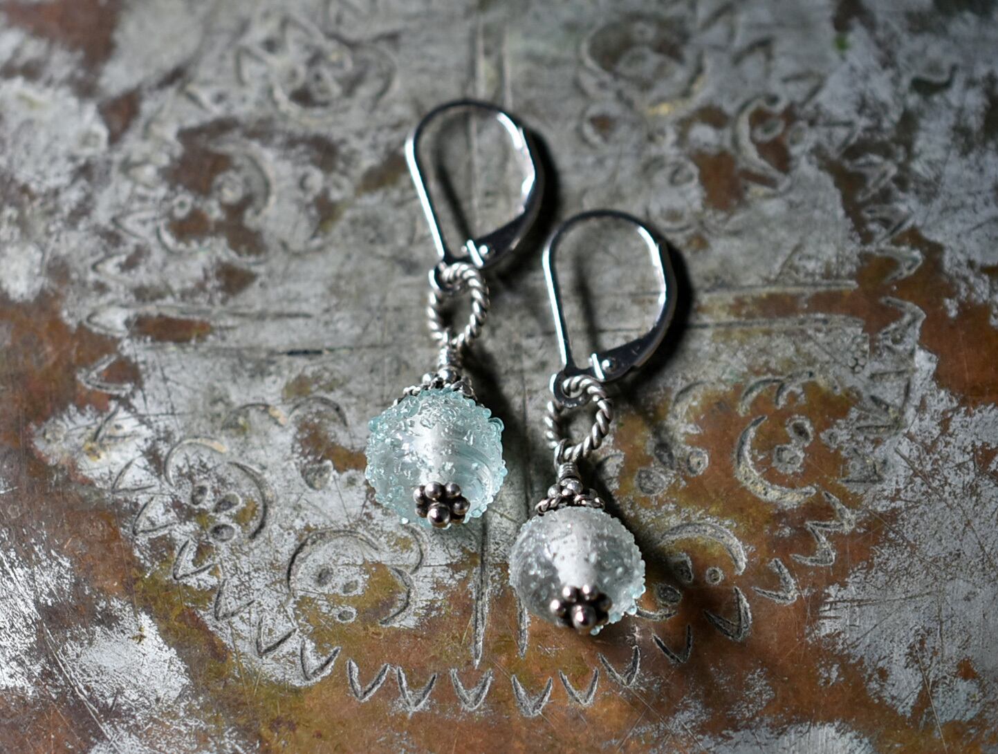 雨粒がついているようなビーズはフランス産のヴィンテージビーズです。1950年代頃に作られたものです。