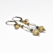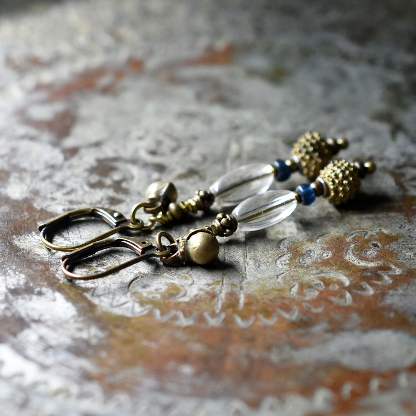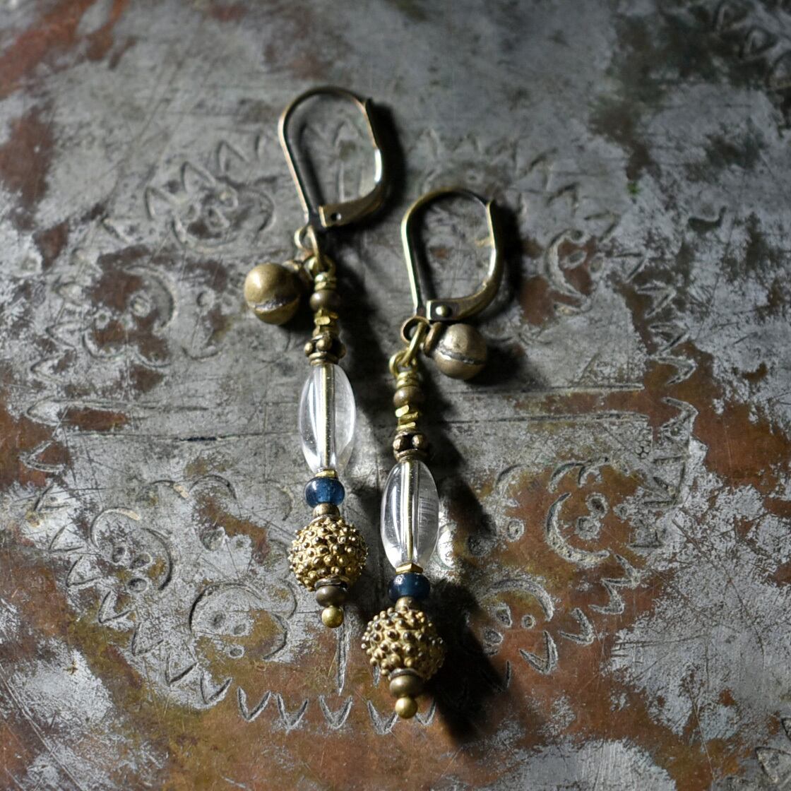 アンティークボヘミアビーズとインディゴブルービーズ、ベニン族のツブツブビーズ、民族鈴のピアス