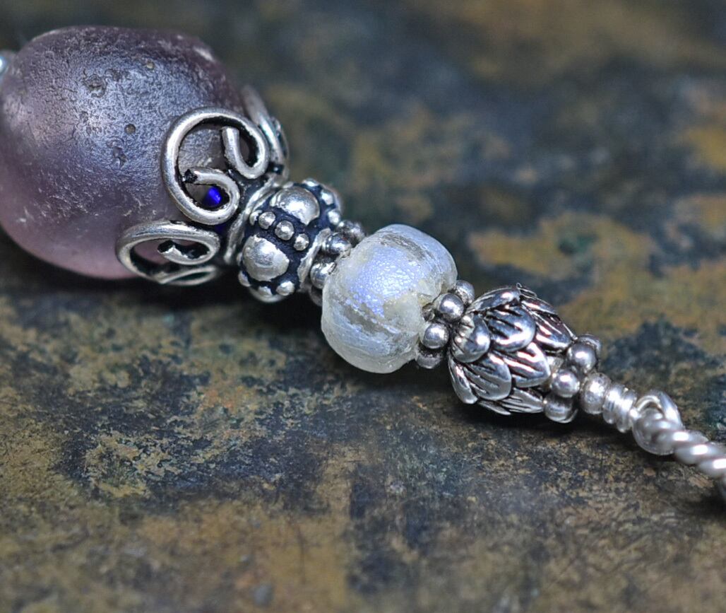 白いビーズはローマ時代にビーズとして作られたもので、ネックレスなどの装飾品として使われていたとても貴重なローマングラスビーズです。