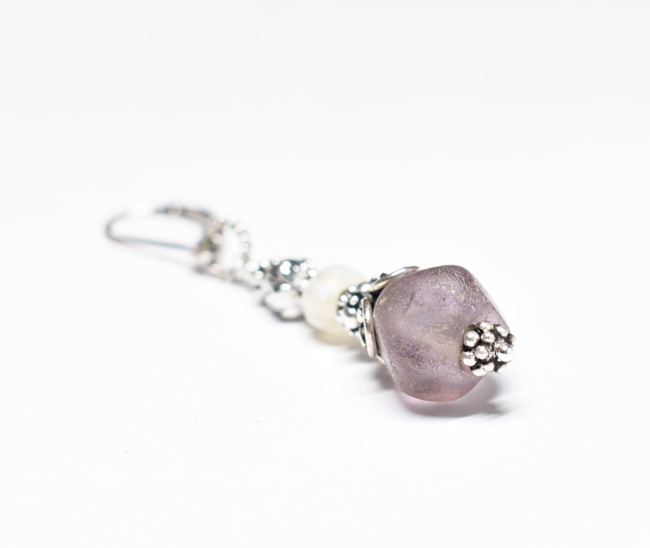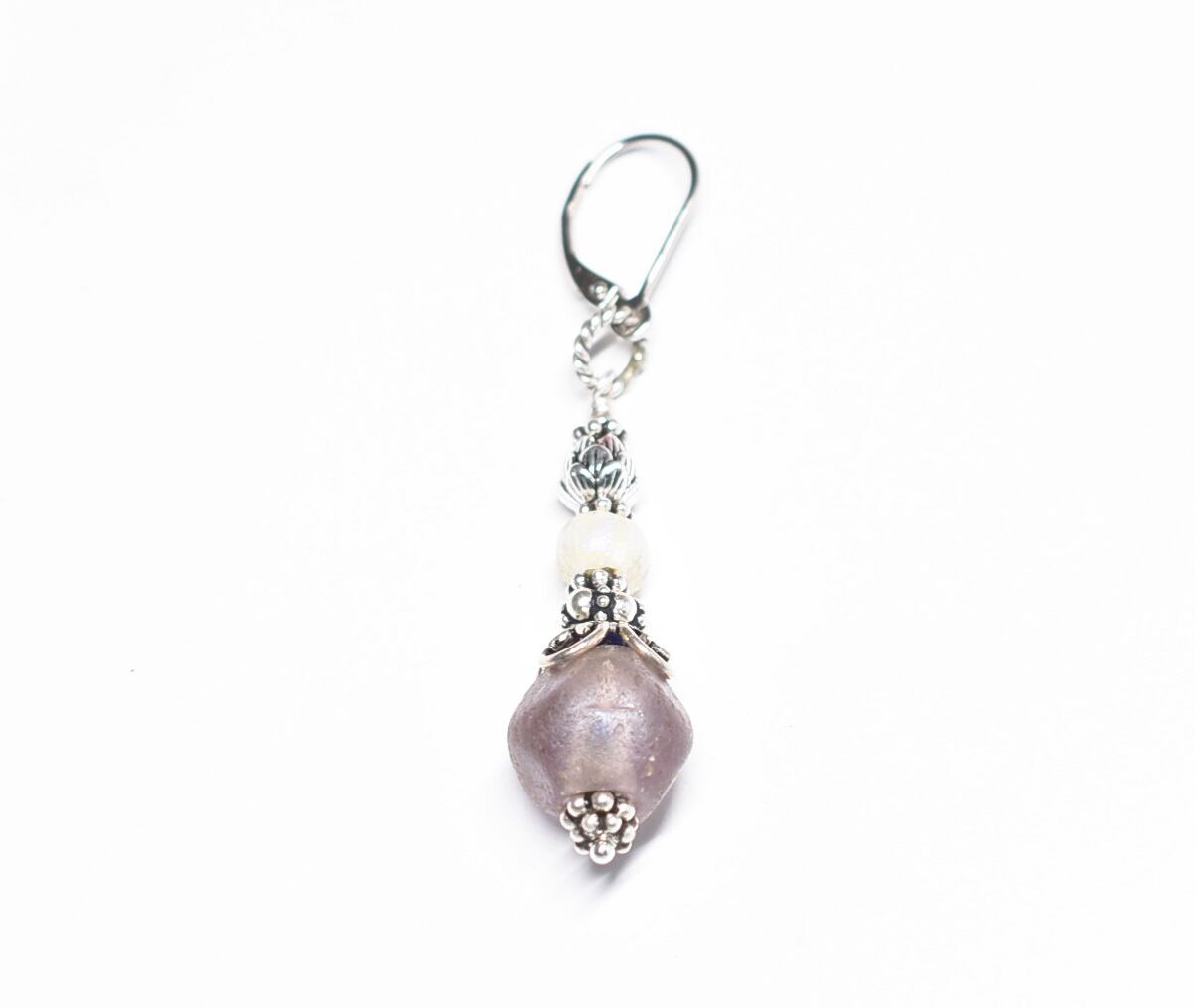 ドゴン族すみれ色ビーズと銀化ローマングラスビーズ、蓮花シルバーを繋いだ片耳ピアスです。