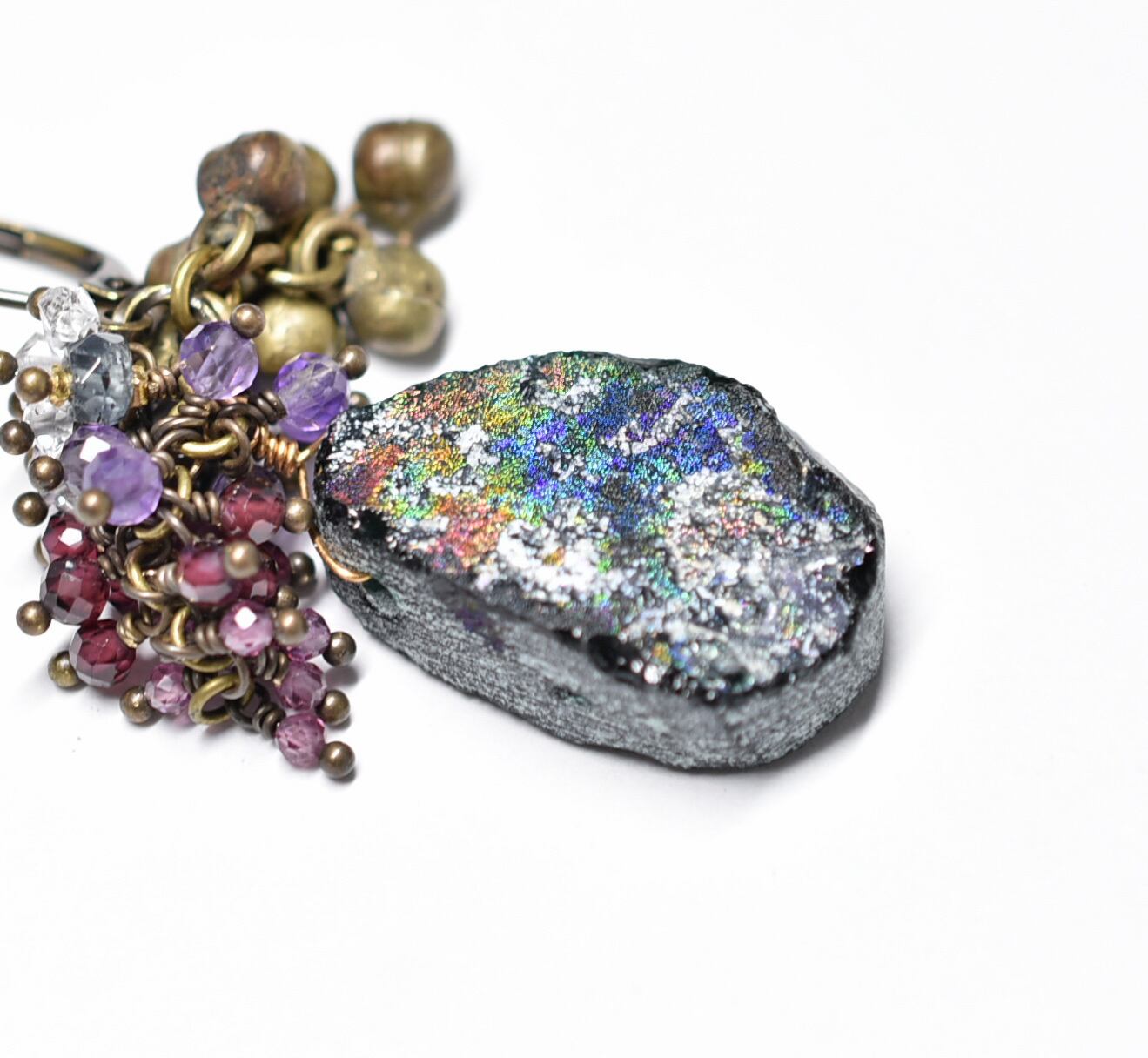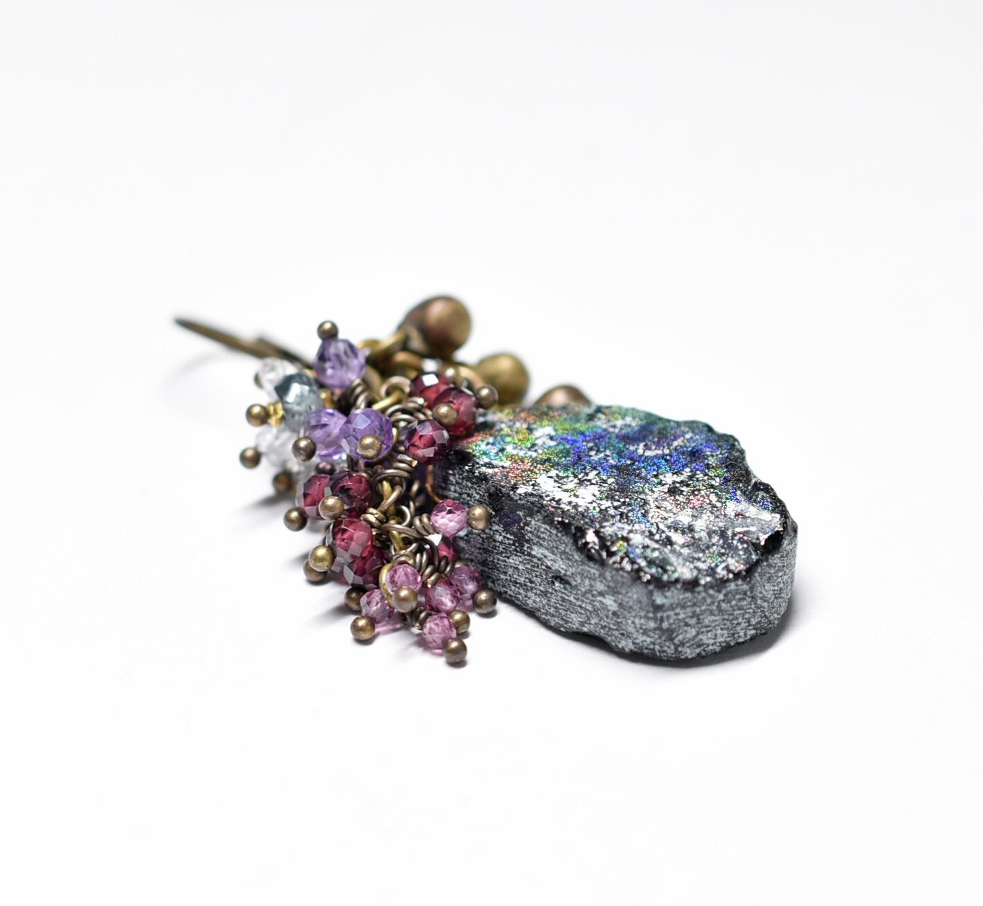 素材:ガラス、アメジスト、ガーネット、カイヤナイト、ハーキマーダイヤモンド、真鍮、ミックスメタル