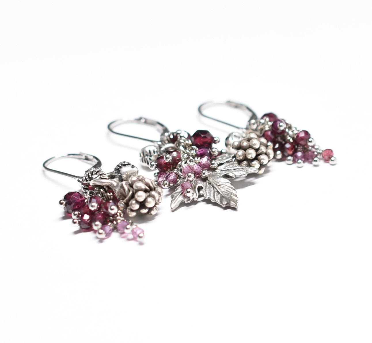 カットが施された3種類の大きさのガーネットも葡萄のように実らせました。