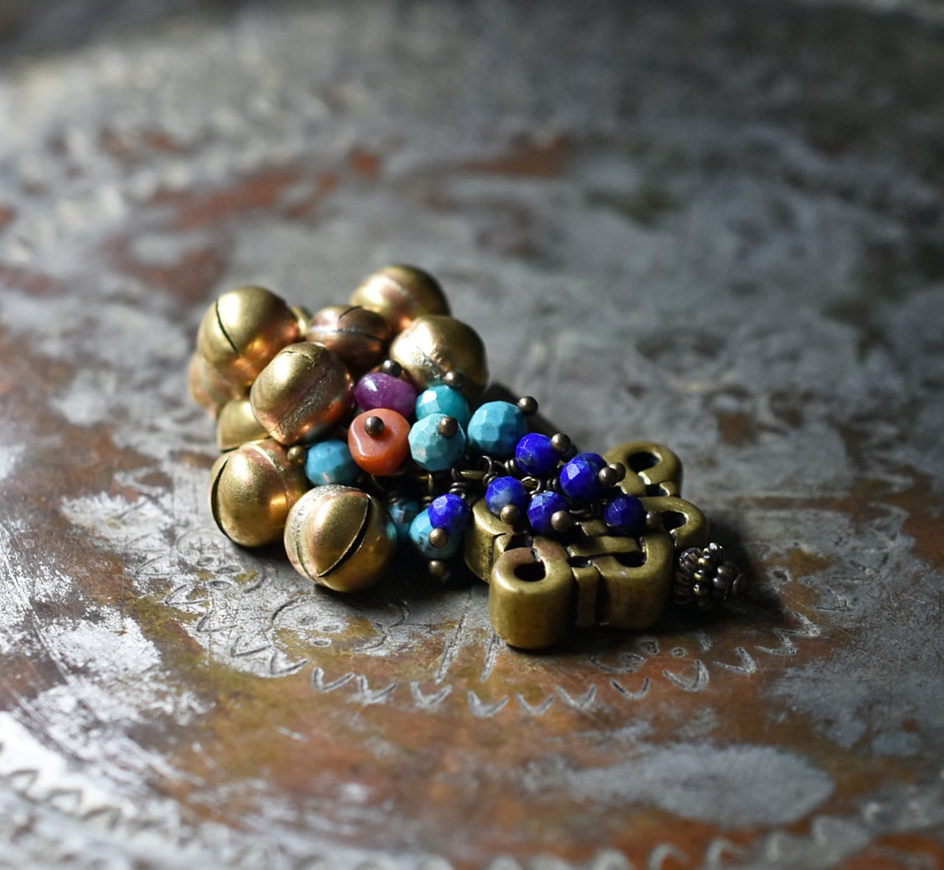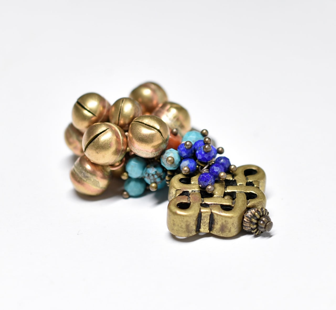 エンドレスノットとたわわな鈴&ストーンビーズ、oldアフガンパーツのペンダントトップ