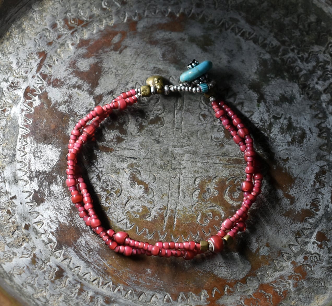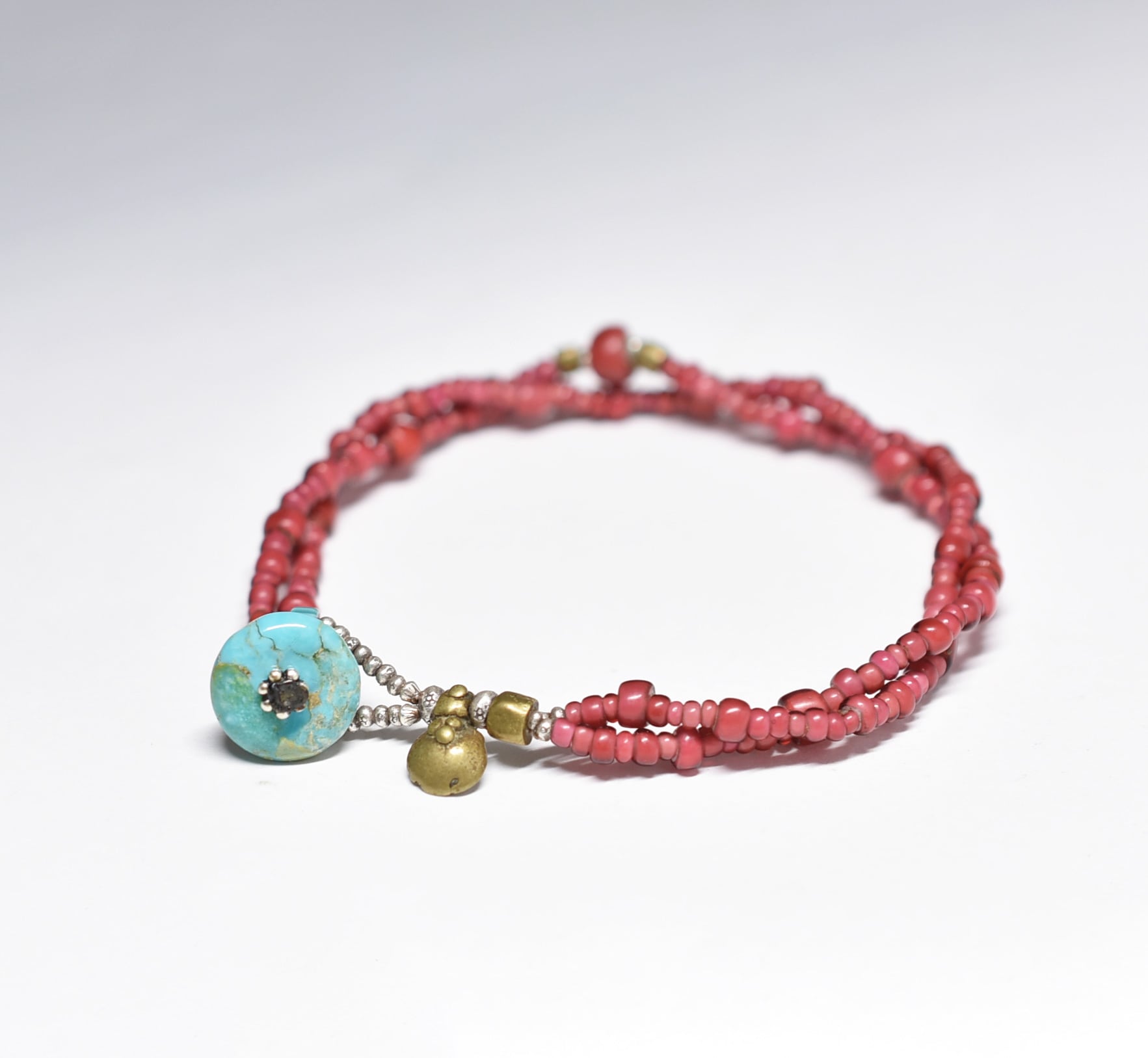 素材:ガラス、真鍮、ターコイズ、ロウビキ紐