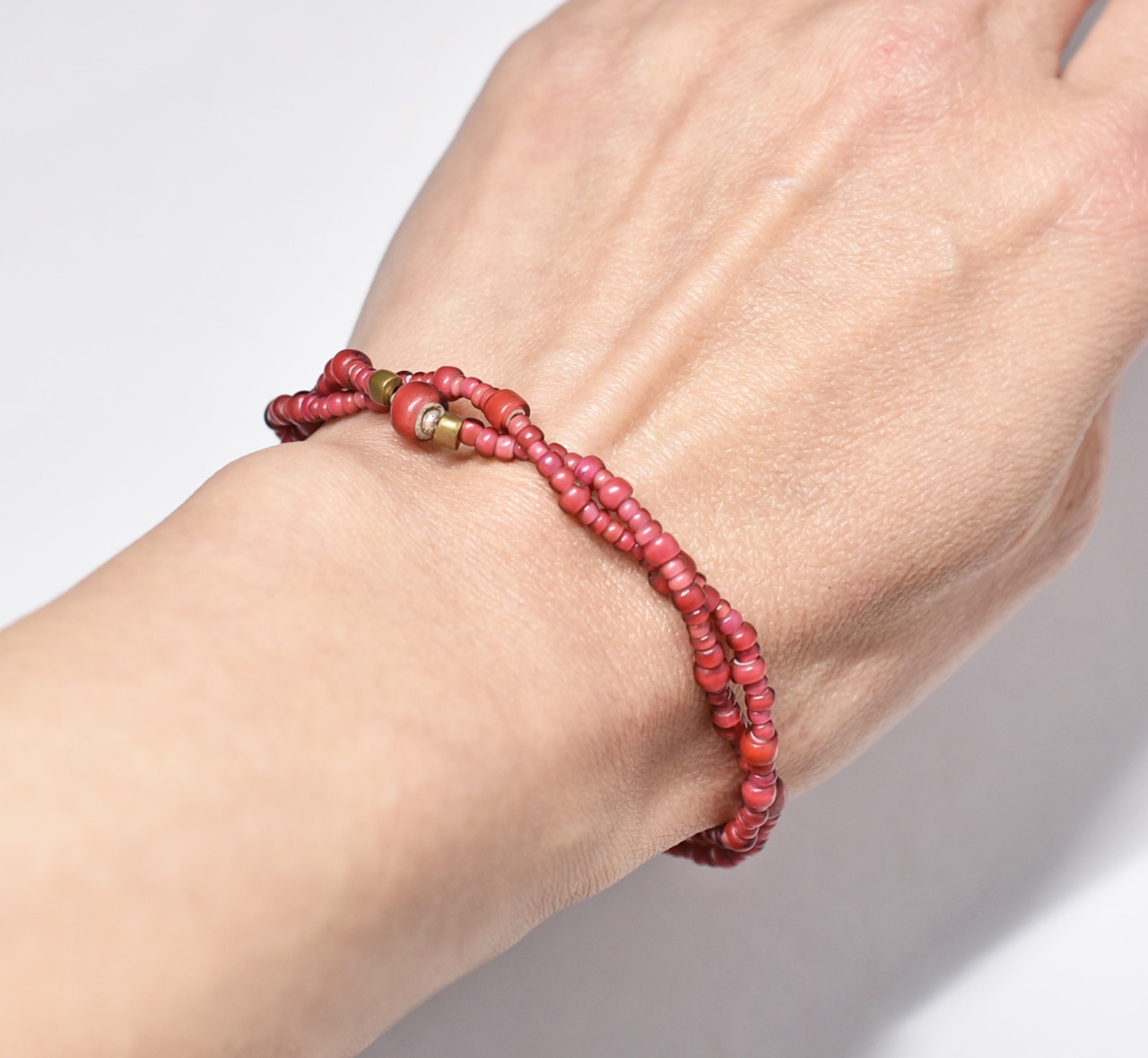 様々な金赤ホワイトハーツを贅沢に使った2連のブレスです。