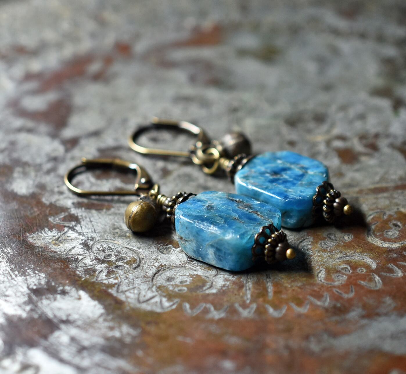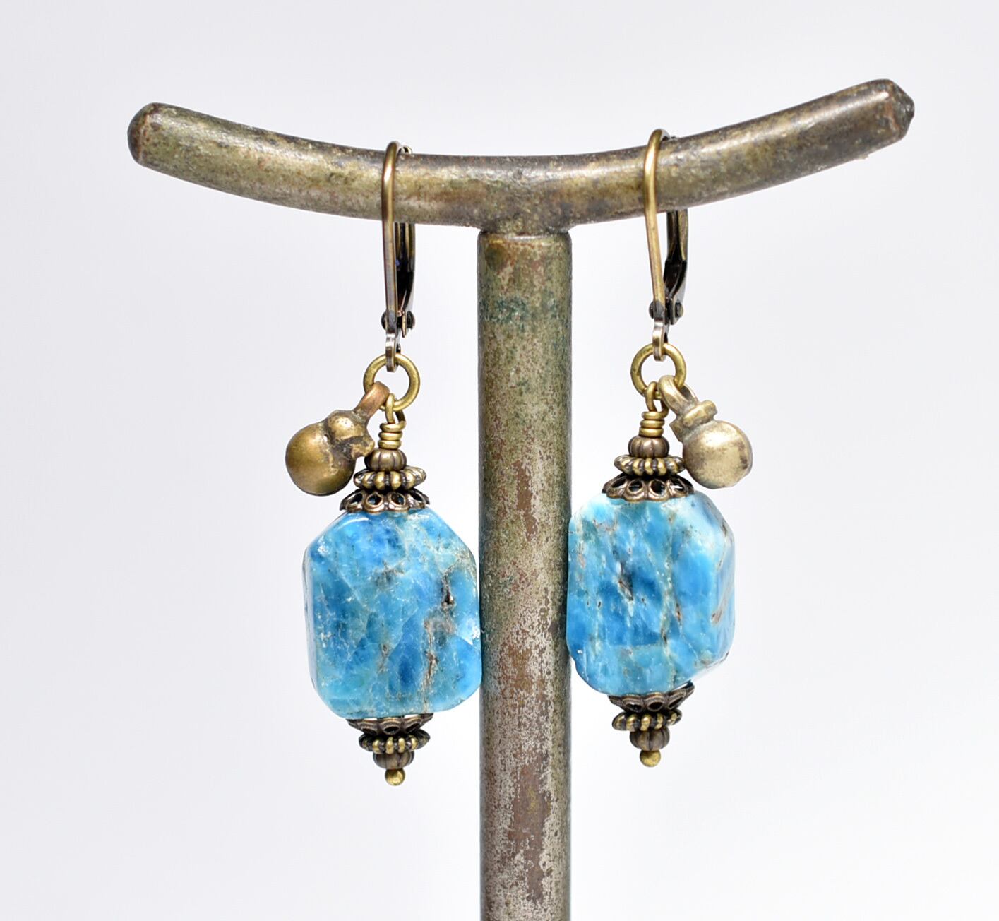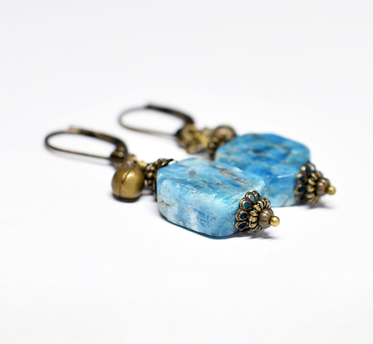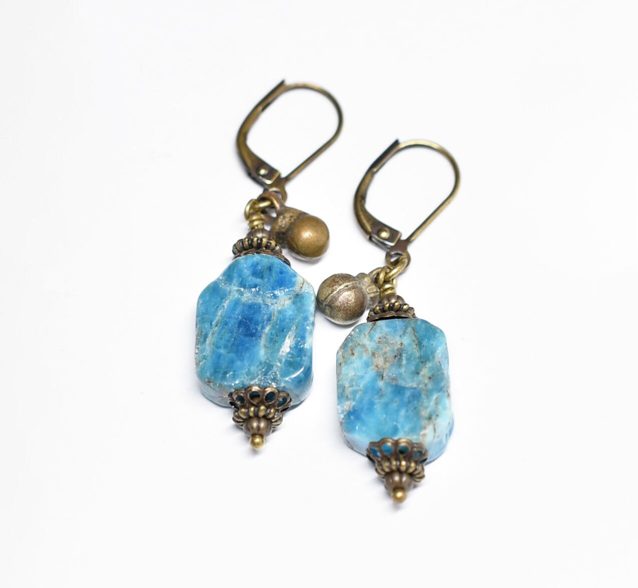 鉱石のような雰囲気も楽しめるアパタイトのピアスです。