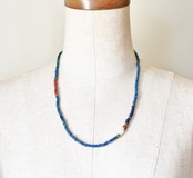 ナガ族アンティークビーズとアフリカ出土瑪瑙、金赤ホワイトハーツ、ブルー&インディゴブルービーズ、oldオリッサブラスなどを繋いだネックレスです。