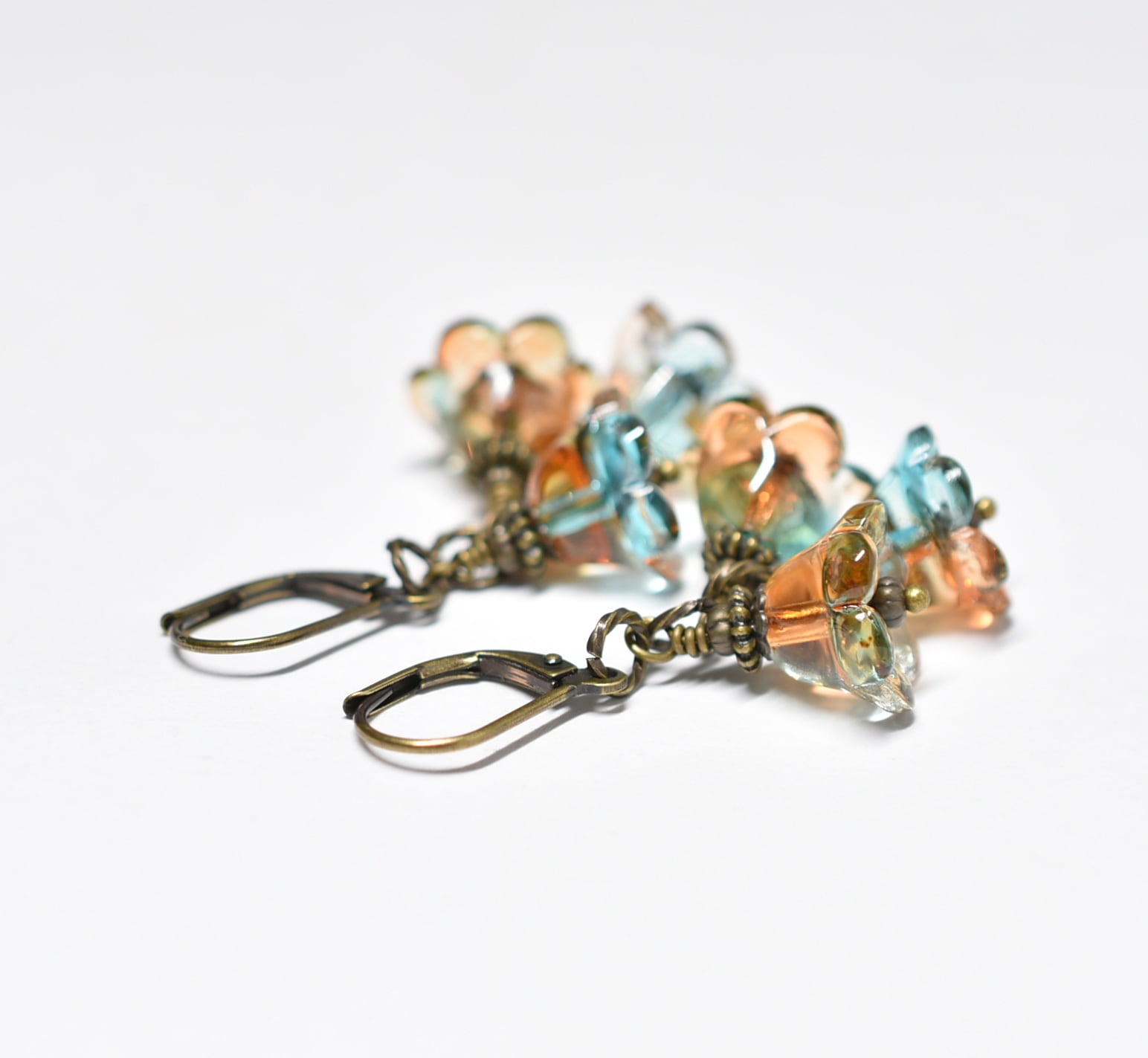 3つのお花japanヴィンテージビーズを繋いだピアスです。