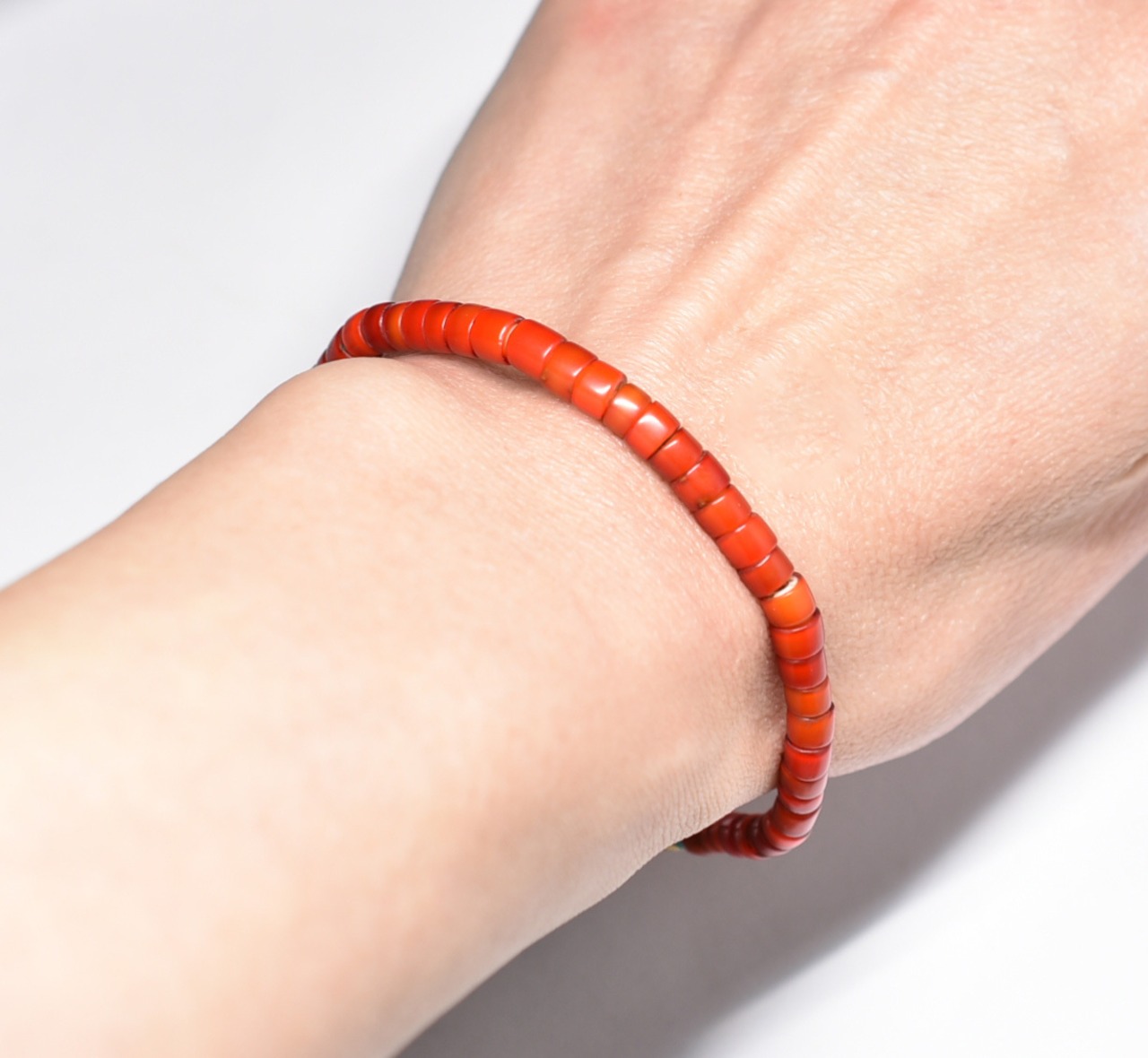 ロウ引き紐で繋いでいますので、最初はやや硬めですが、身に付けて行くうちにしなやかになります。