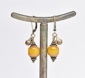 ツートン琥珀色アフリカンアンバーと民族鈴のピアス(楕円)