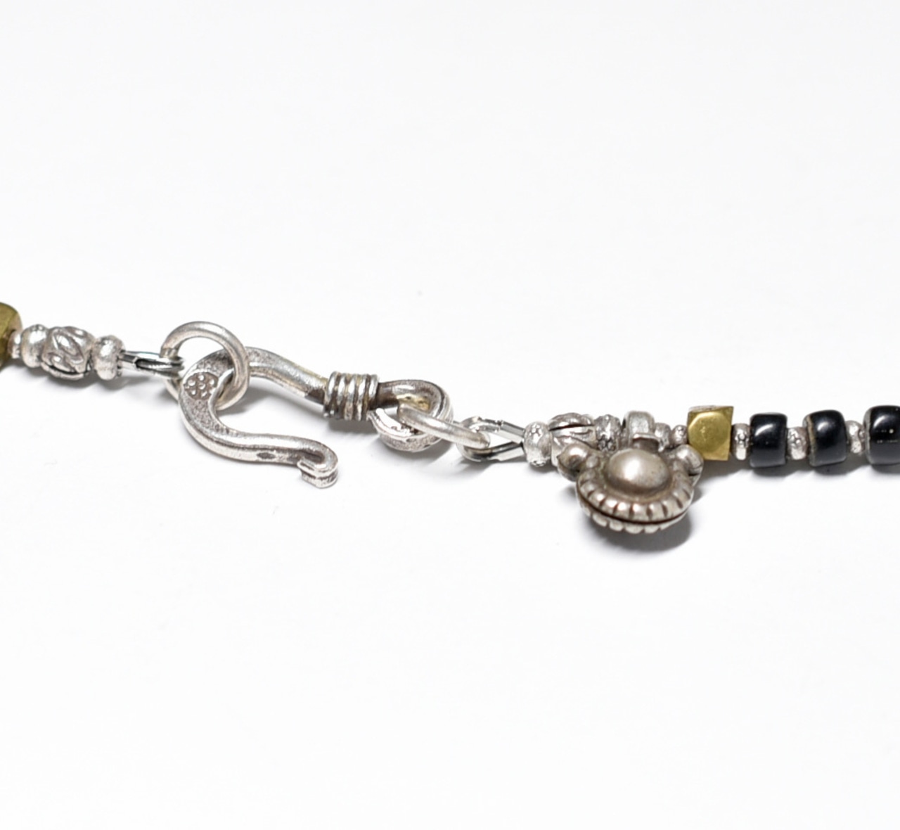 留め金付近のチャームはインドから届いたシルバー製のものです。