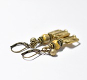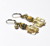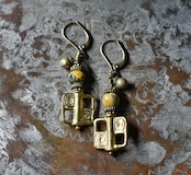 格子模様インドブラスとエクリプス、小さな民族鈴を繋いだピアスです。
