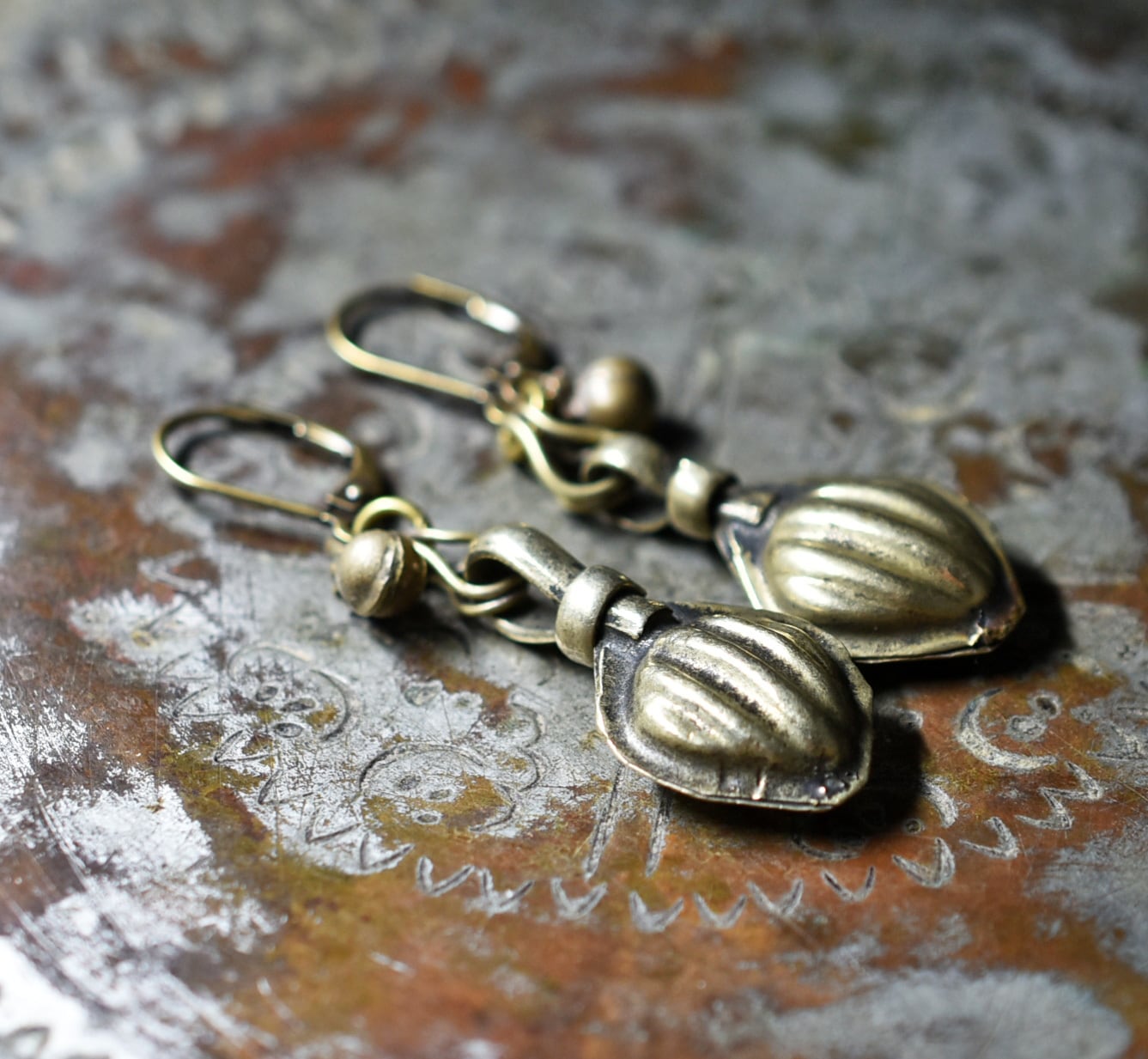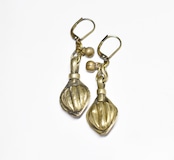 木の実の様なoldアフガンパーツと民族鈴を繋いだピアスです。