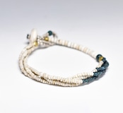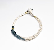 アンティークホワイトシードビーズとインディゴブルーアンティークビーズの4連mixブレス(貝留め金)