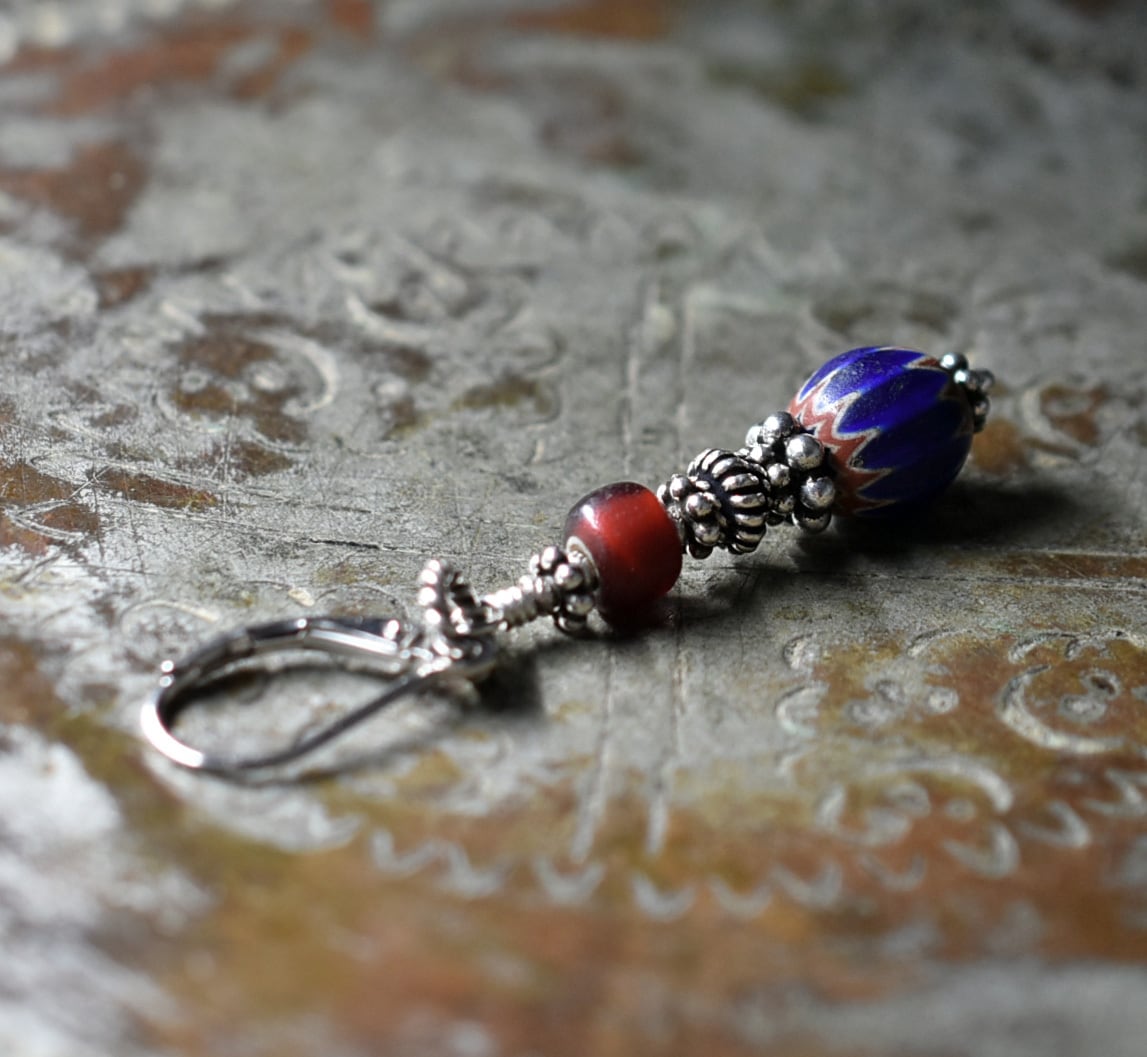 コロンと丸いブルーのビーズはシェブロンと呼ばれるアンティークのベネチアビーズです。楕円型のものは4層構造になっていてます。