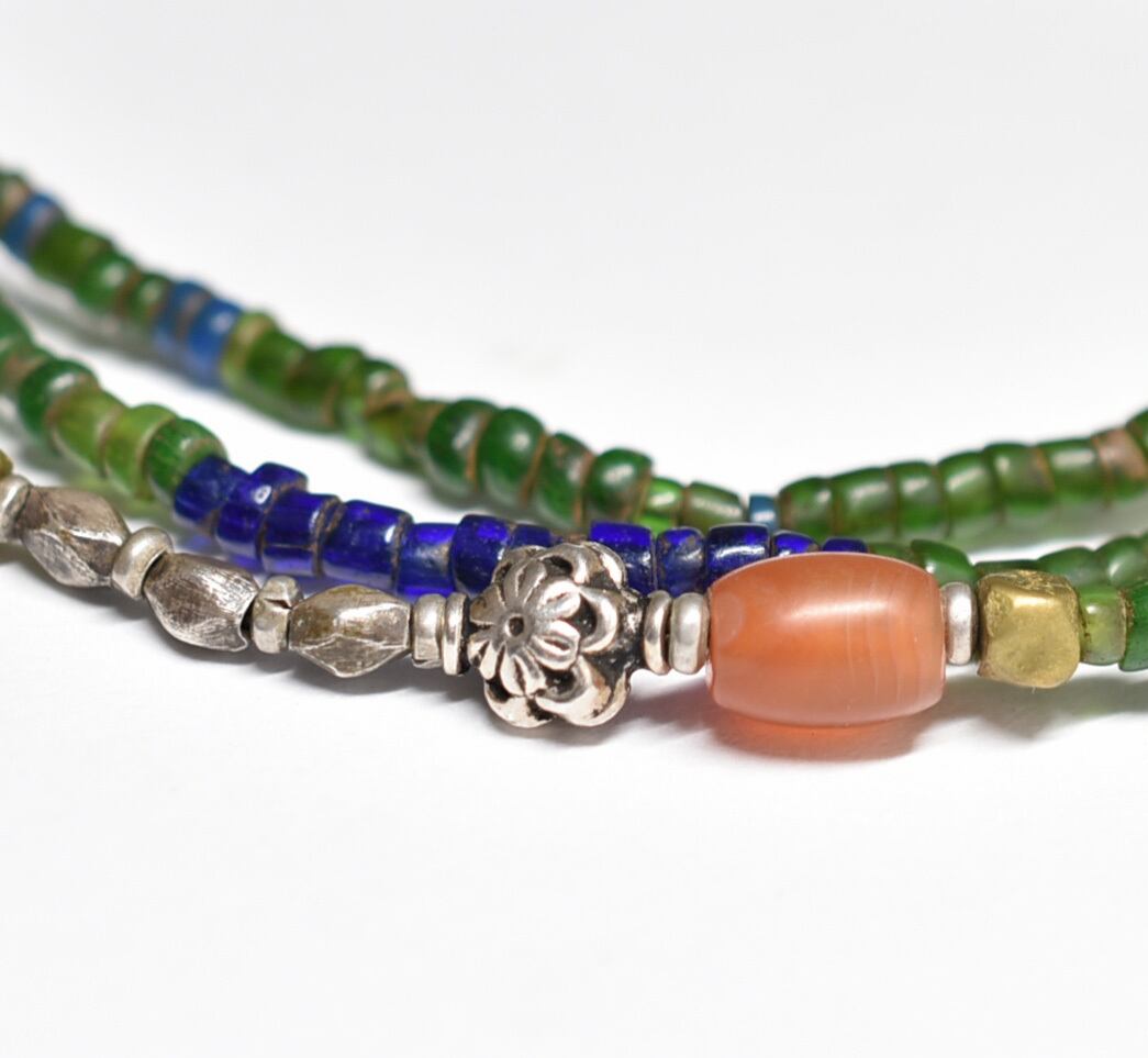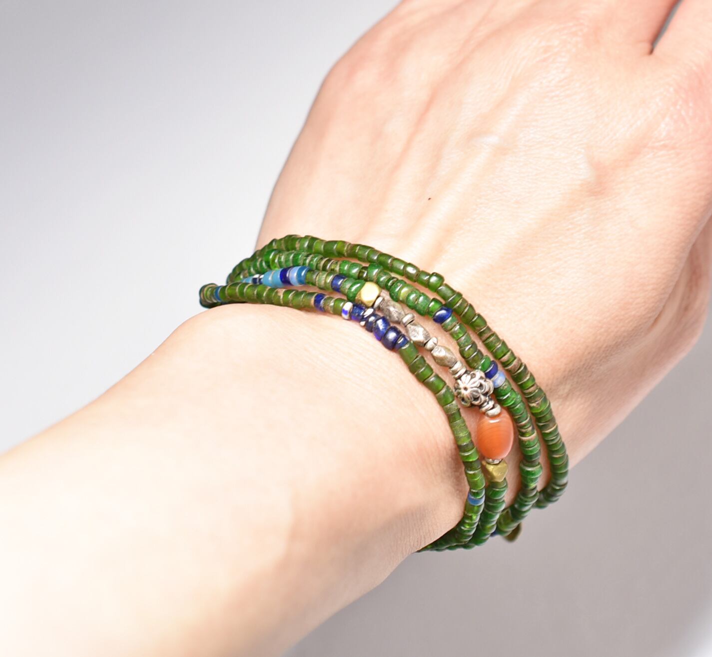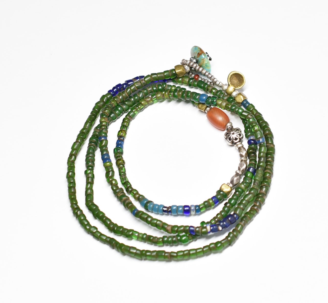 グリーンや、縞模様入りやブルーなどのビーズじゃインドのナガ族に渡った、古いヴェネチアビーズです。