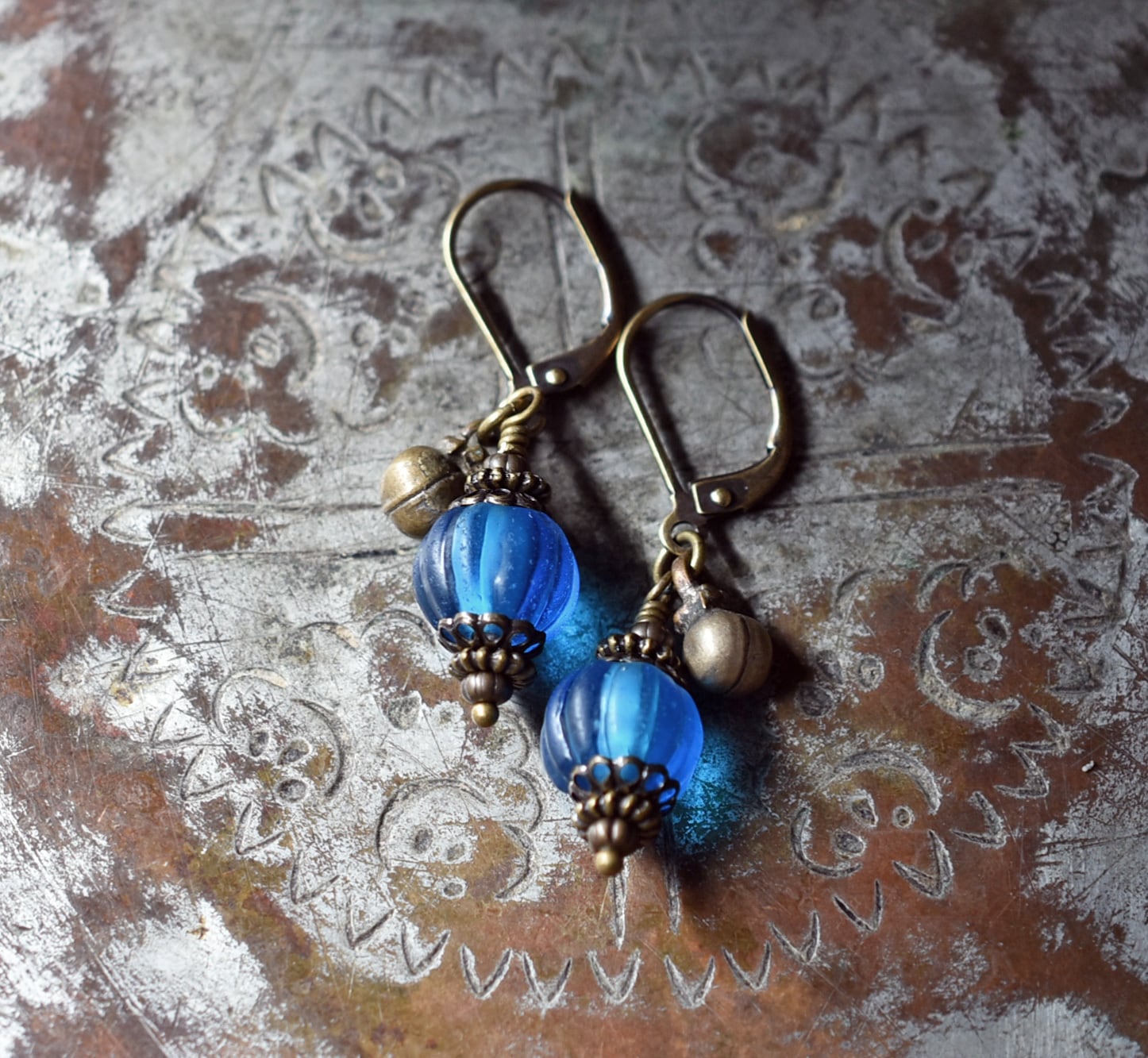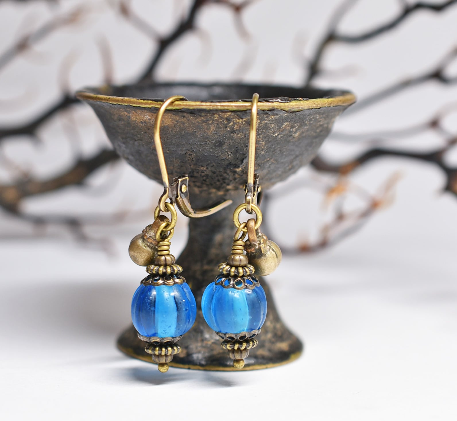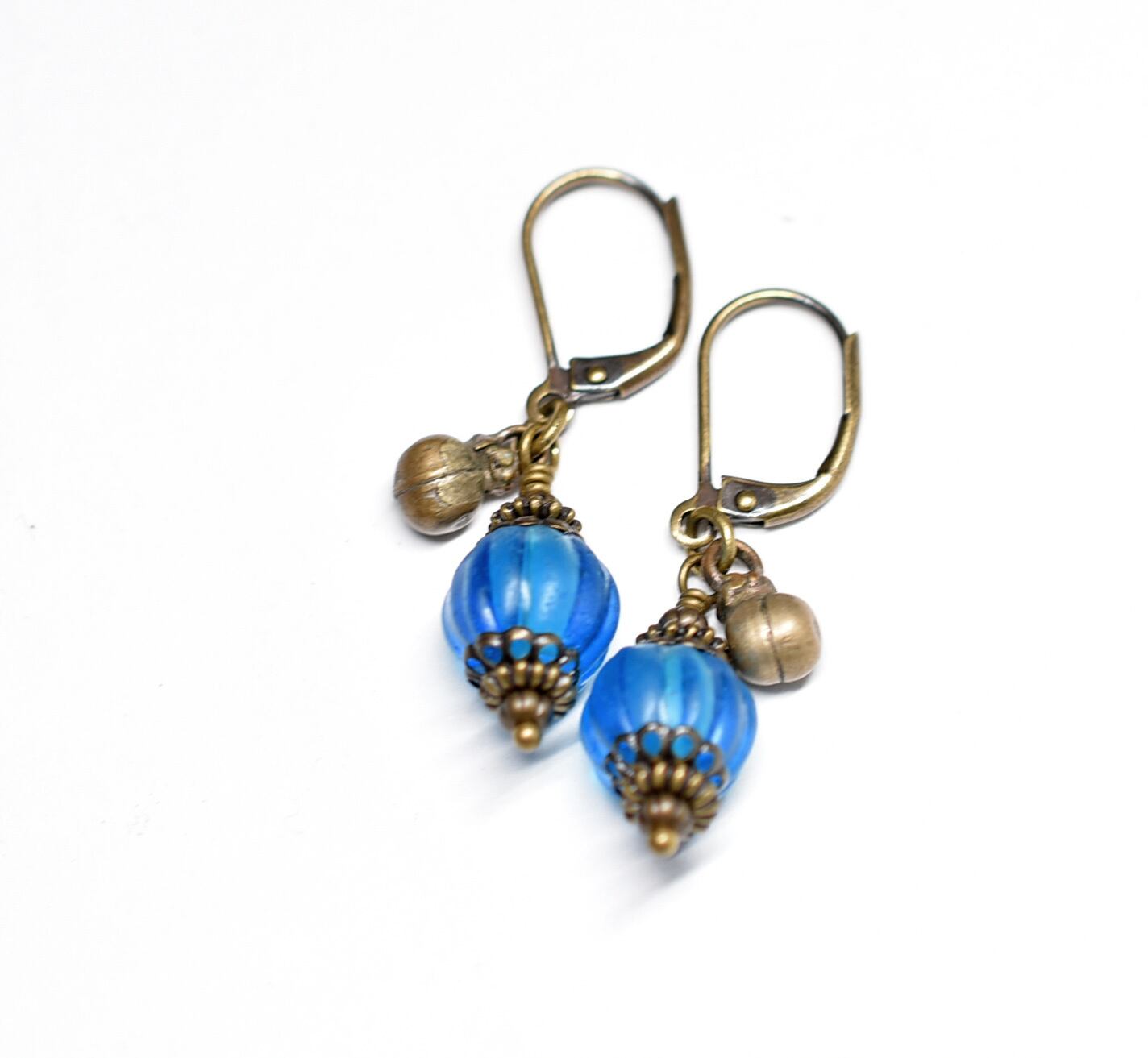 ナガ族スカイブルー蜜柑玉と民族鈴を繋いだ小さなピアスです。
