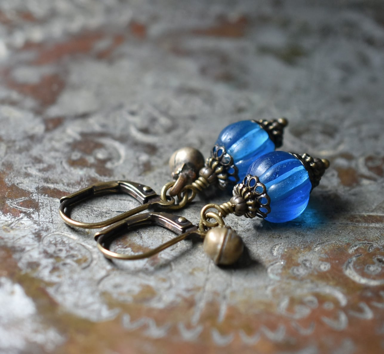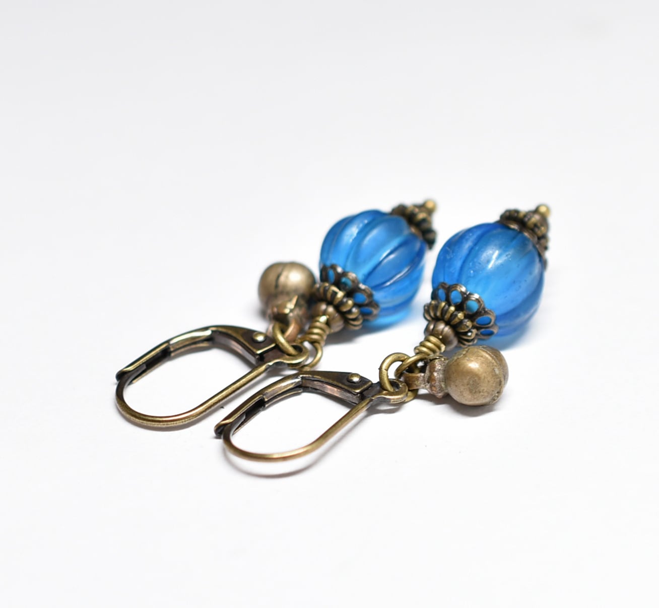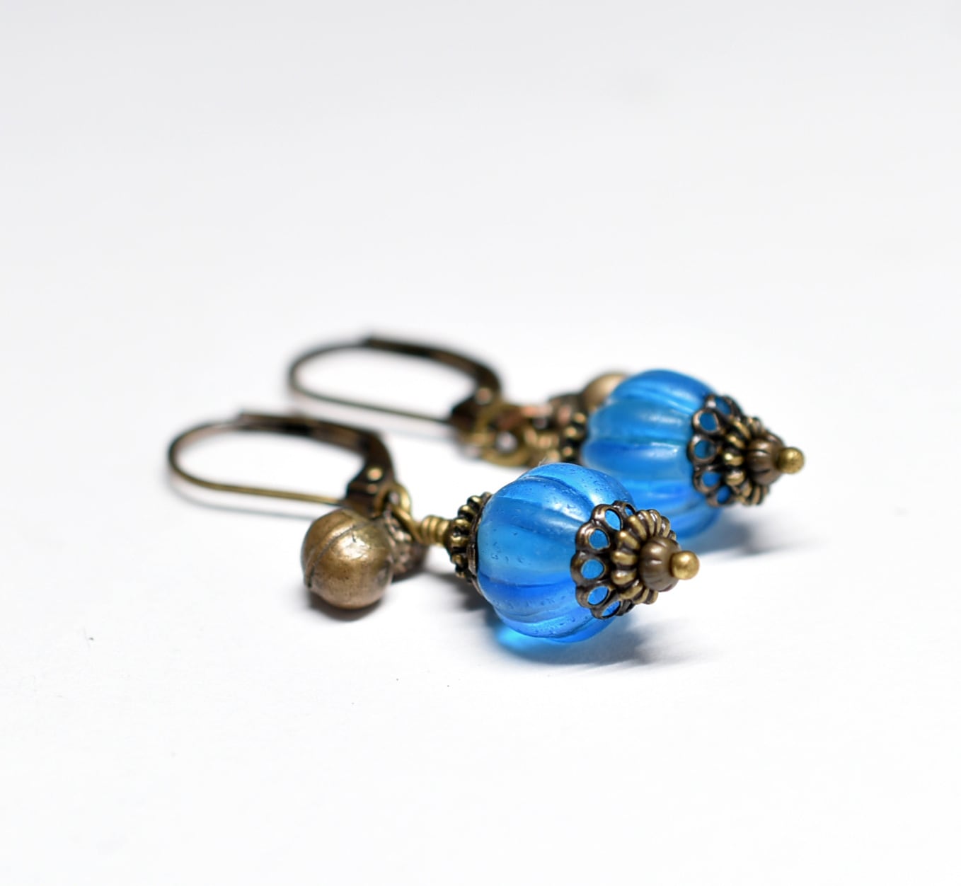 ナガ族スカイブルー蜜柑玉と民族鈴を繋いだ小さなピアスです。