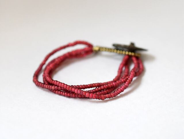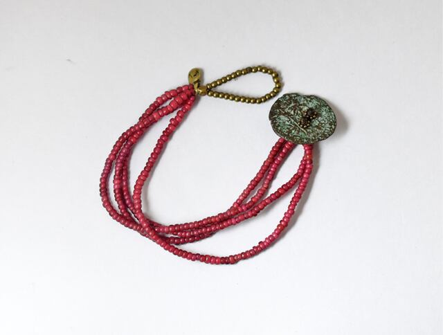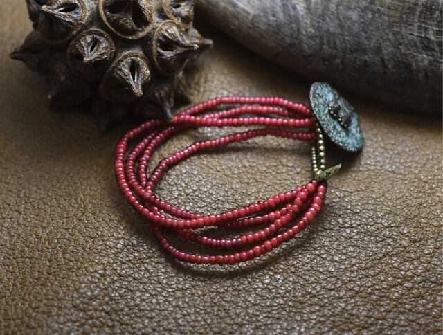 アンティークの小さな金赤ホワイトハーツを4連にしたブレスです。