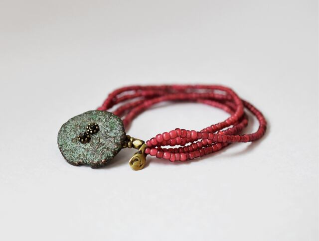 留め金部分にはオールドオリッサブラスのチャームを入れました。