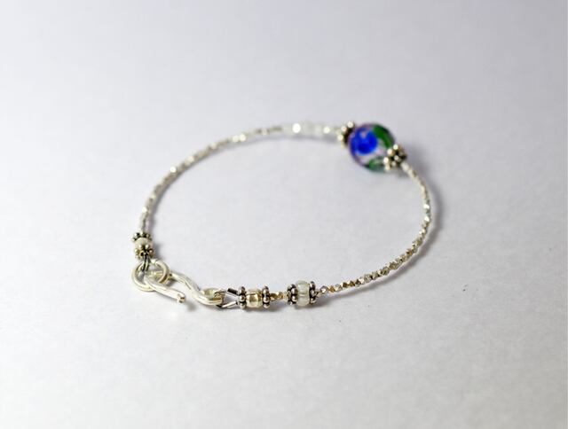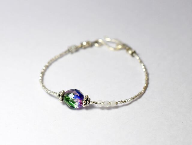 アイリスガラスと呼ばれるチェコ産のアンティークビーズをキラキラのカレンシルバーで繋いだブレスです。