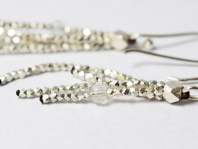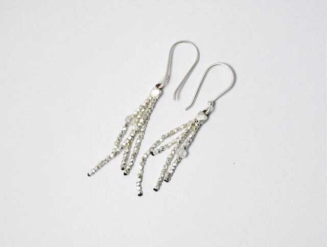 キラキラとした小さなカレンシルバービーズを4連にしたピアスです。
