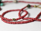 小さな金赤ホワイトハーツ(19〜20世紀.ベネチア製)を繋いだネックレスをです。