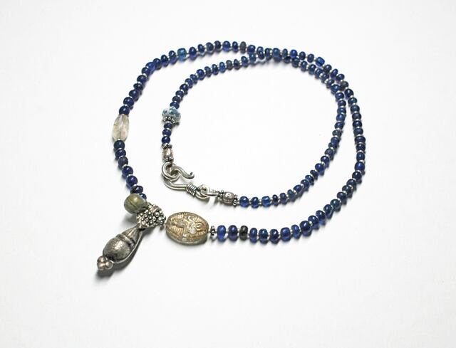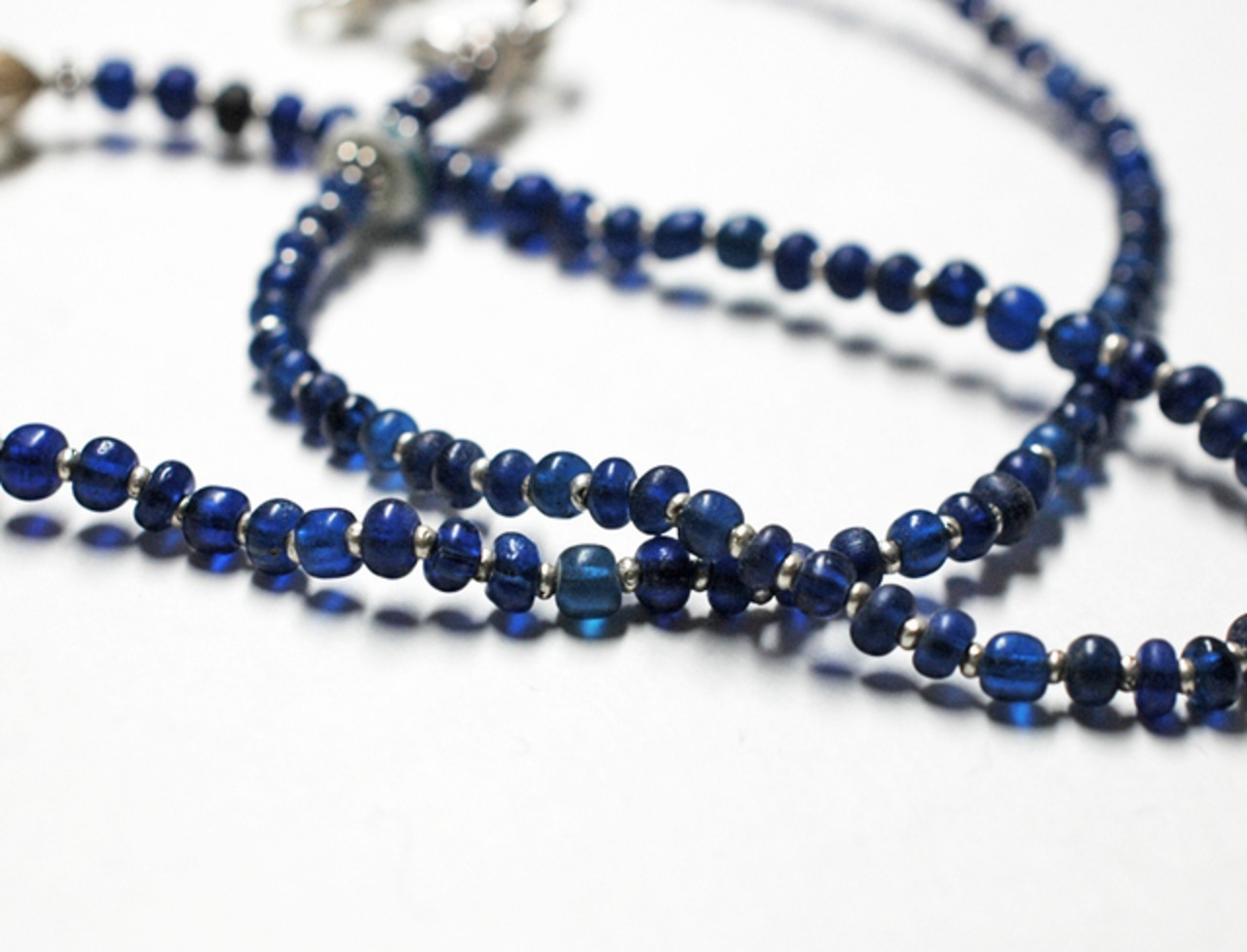 群青色のアンティークビーズ(インドパシフィックビーズ・7~13世紀)を繋いだネックレスです。