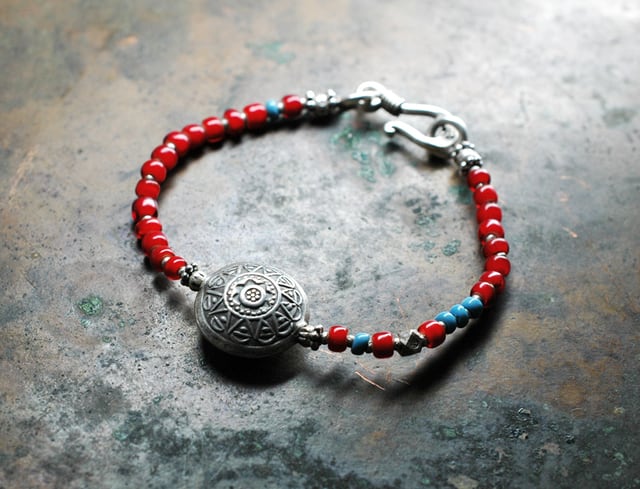 アンティークのホワイトハーツと、丸いカレンシルバーのブレスです。