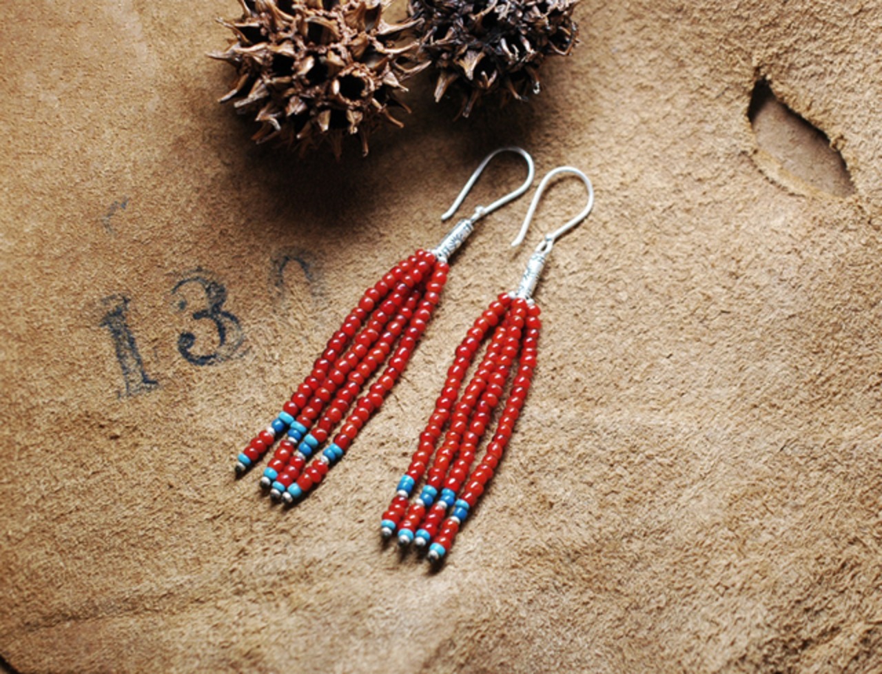 インディアンジュエリーのような、ちょっとワイルドな雰囲気のピアスです。