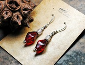 アンティークグーズベリーとドイツガラスの深紅ピアス
