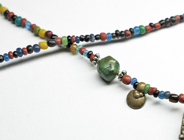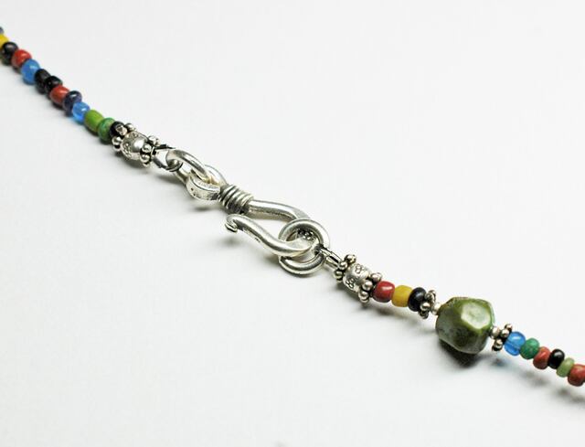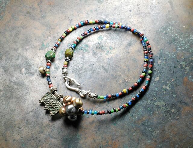 エチオピアンシルバーをトップにして、インドパシフィックビーズと呼ばれるカラフルなアンティークビーズで繋いだネックレスです。