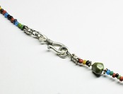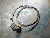 カラフルなのに燻し銀のネックレスです。小さなビーズで繋いでいますので、首回りは華奢な感じですが