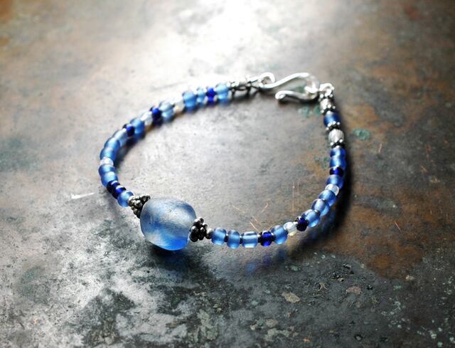 ガーナから届いた再生ガラスビーズを使ったブレスです。
