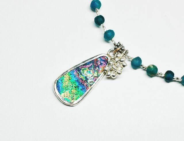銀化したローマングラスを、カレンシルバーで繋げたネックレスです。