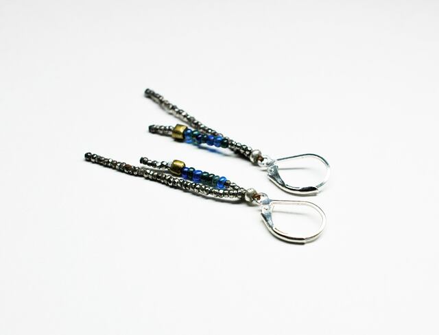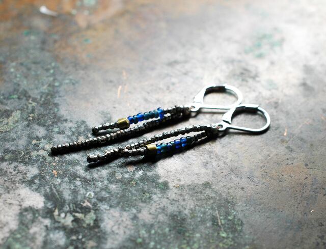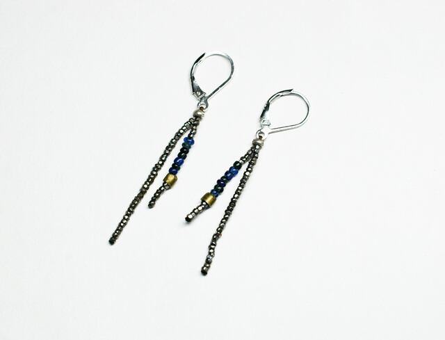 フランスアンティークメタルビーズとブルービーズの2連ピアス
