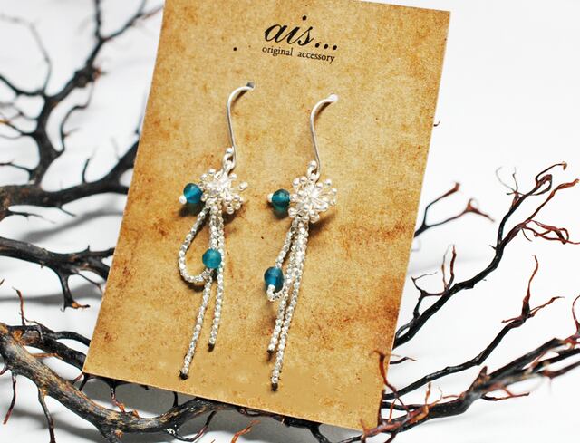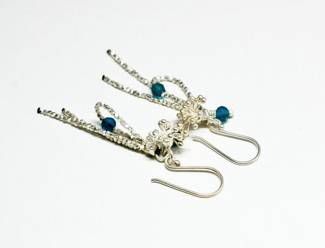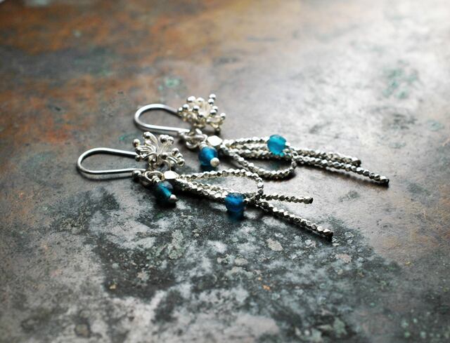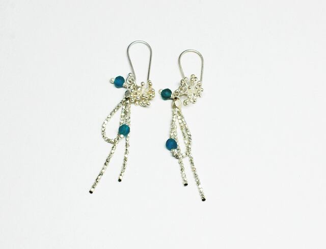 雨粒ローマングラスと舞上った雫のようなカレンシルバーチャームの煌めくピアス