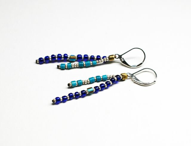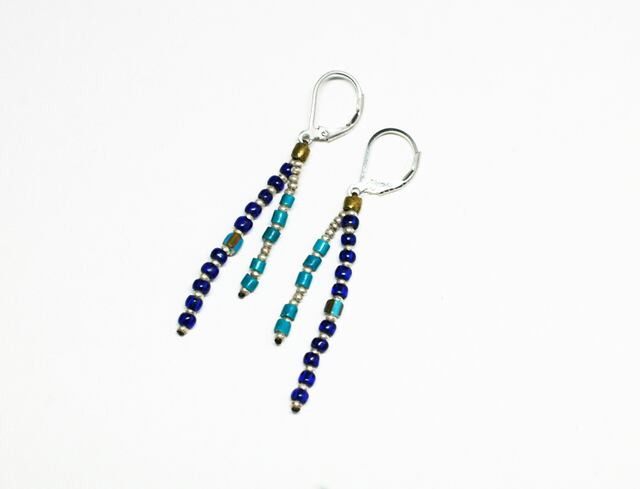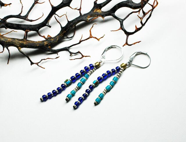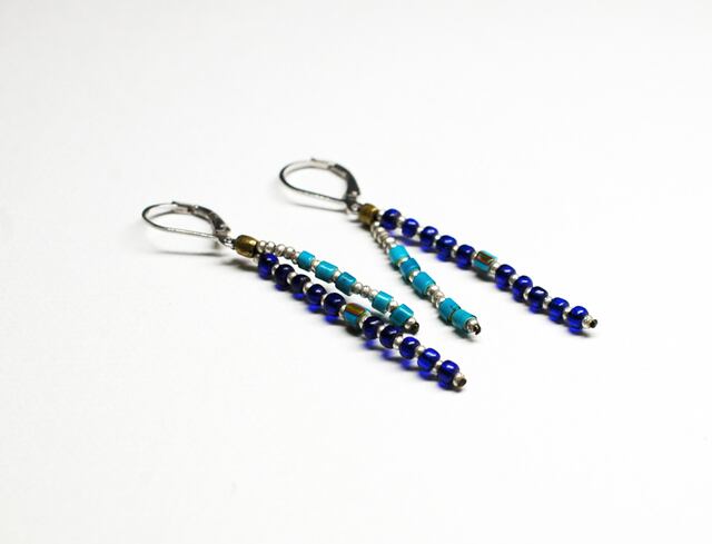 ターコイズブルーのホワイトハーツと瑠璃色ベネチアビーズのピアス