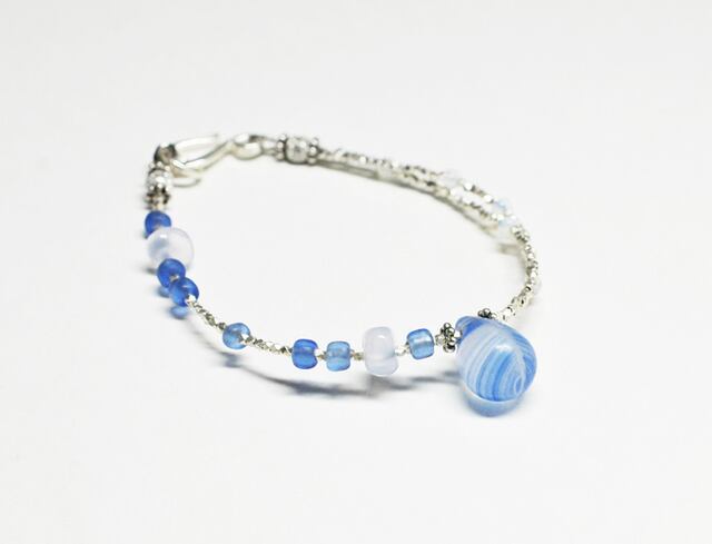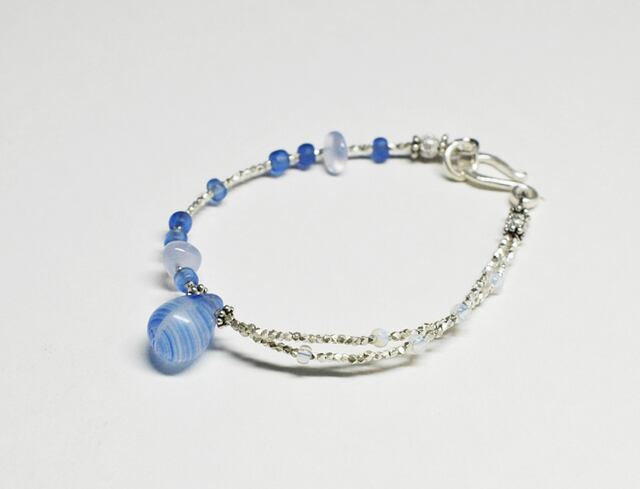 ちょっと大き目な薄いブルーのビーズは天然石(ブルーレース)です。