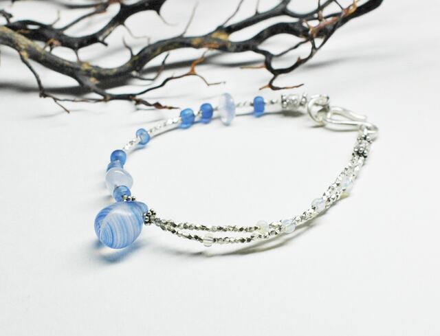 蜘蛛の糸についた朝露のような、美しいいけれどそれだけではない雰囲気のあるブレスです。