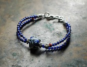 ブラックミルフィオリと瑠璃色アンティークビーズの2連ブレス